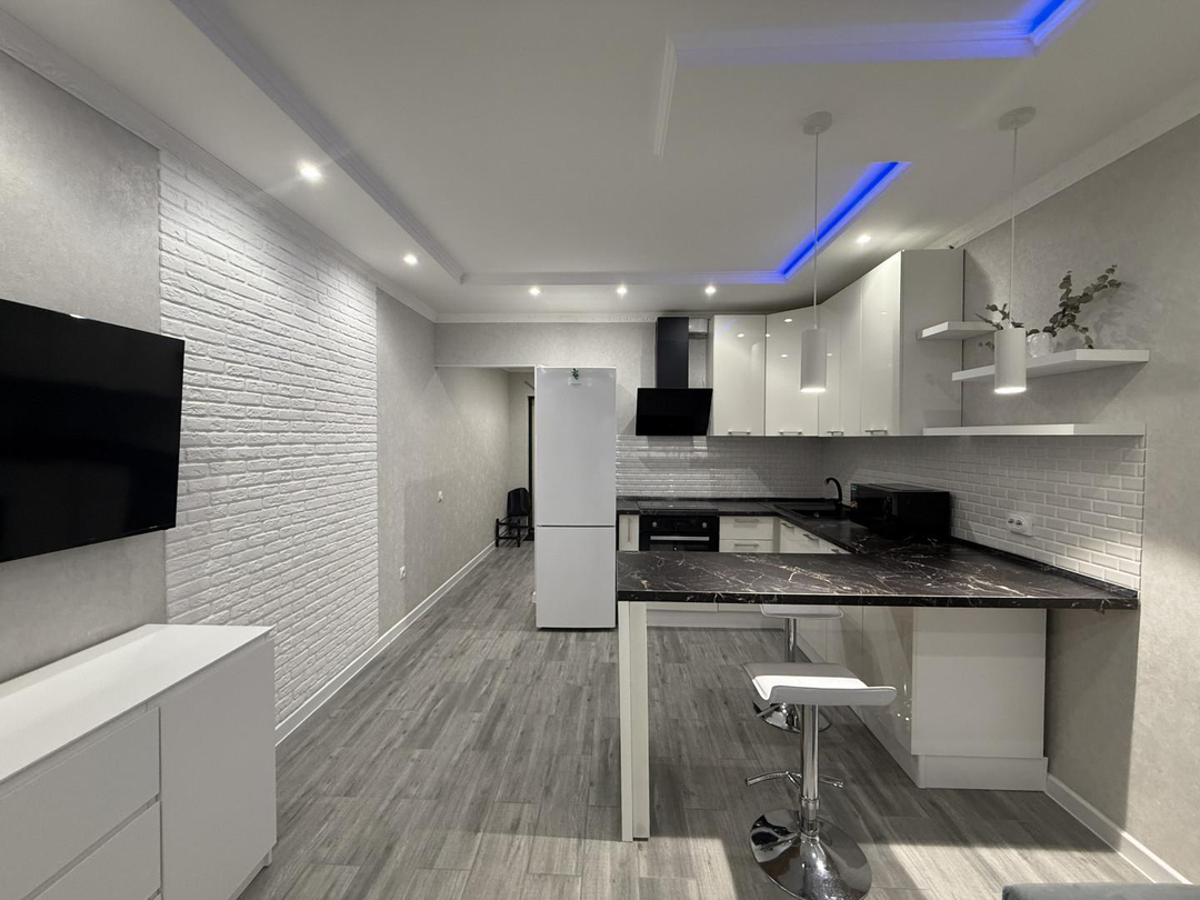 Преимущества нашей квартиры в качественном добротном и стильном нейтральном ремонте, хорошим оснащением и удобном расположении, на комфортном 5 этаже, куда можно спокойно подняться пешком или что на двух быстрых лифтах.