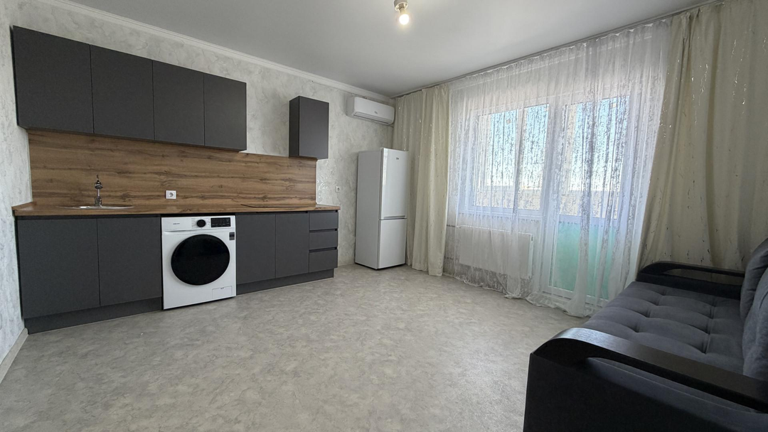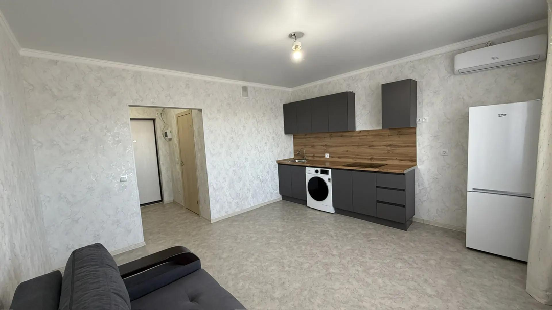 Светлая и очень уютная студия площадью 25,1 м² с продуманной планировкой. Пространство организовано так, что в квартире комфортно жить одному или молодой паре. Большие окна дают много естественного света — в квартире всегда тепло и по-домашнему приятно.