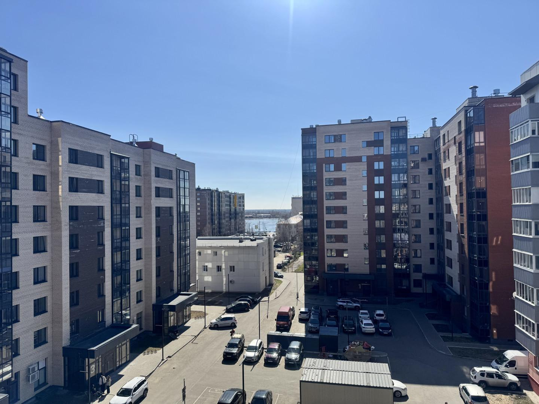 окна выходят во двор, вдали открывается вид на реку