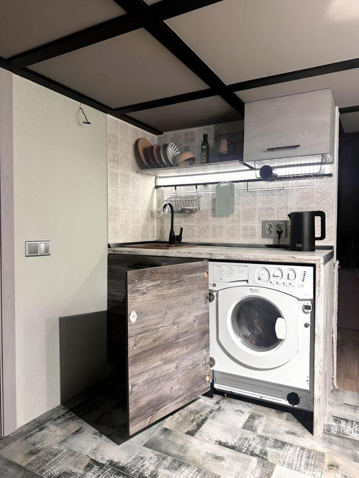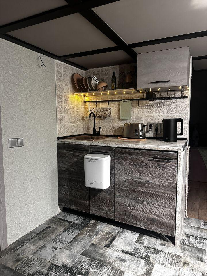 Вас ждет эксклюзивный дизайнерский ремонт, выполненный с любовью и вниманием к каждой детали. Высокие потолки позволили создать уютный и функциональный спальный ярус с удобной лестницей, добавляющий пространству уникальность. Кухня отделена от комнаты, обеспечивая комфорт и приватность.