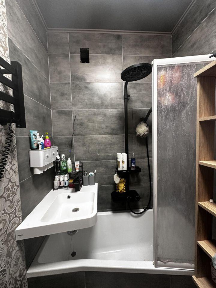 Новым владельцам останутся стильный, дорогой диван, вместительные шкафы и вся необходимая техника. Ванная комната поражает дорогой сантехникой и изысканной плиткой.