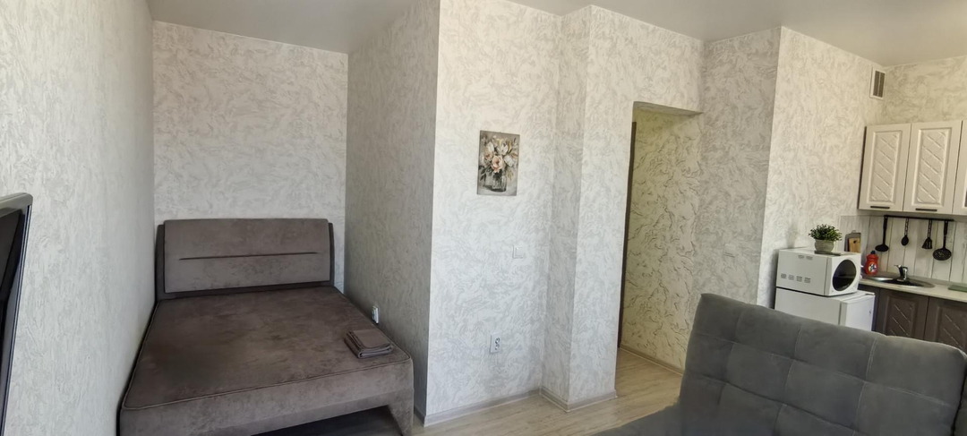 сейчас пространство включает в себя полноценное спальное место с кроватью, - зону отдыха - большой раскладывающийся современный диван с тумбой\