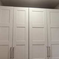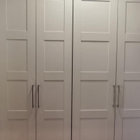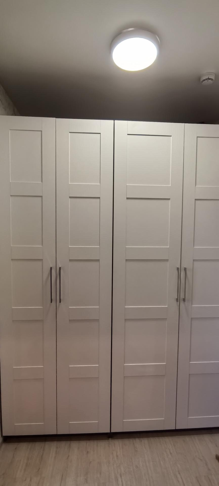 В квартире остается кровать, диван, кухня, стол и стулья в обеденной, большой гардеробный шкаф.