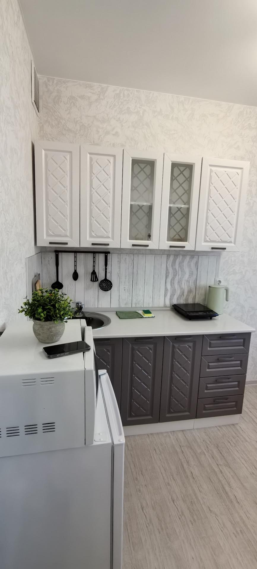 Кроме того, в квартире размещена удобная и функциональная кухонная зона , а также в уютные вечера у окна можно разместиться в обеденной зоне за круглым столом.