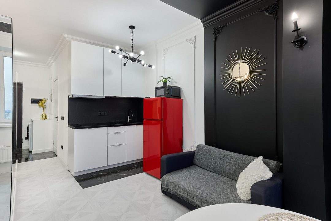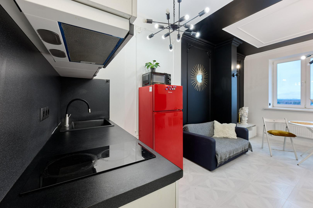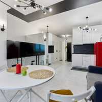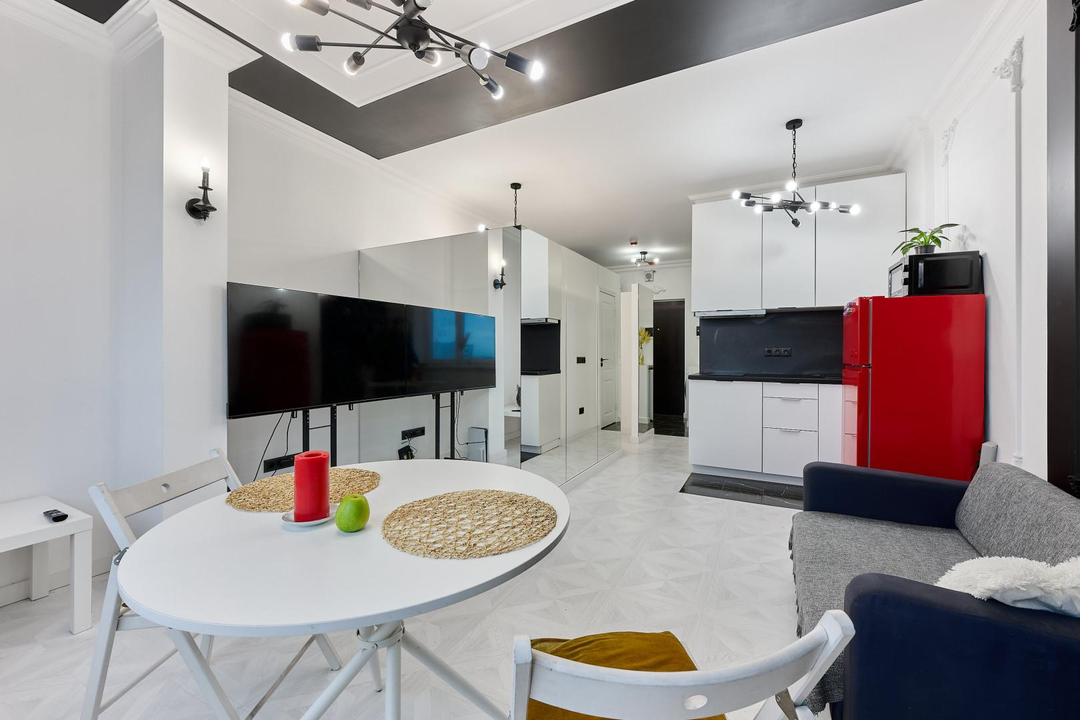 Стильная и светлая студия с дизайнерским ремонтом.