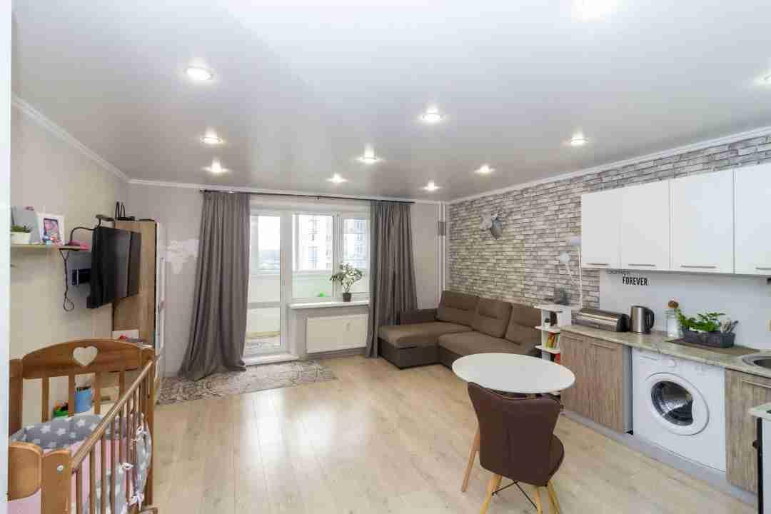 Квартира выполнена в современном дизайне с использованием светлых тонов,что создаёт атмосферу уюта и простора.