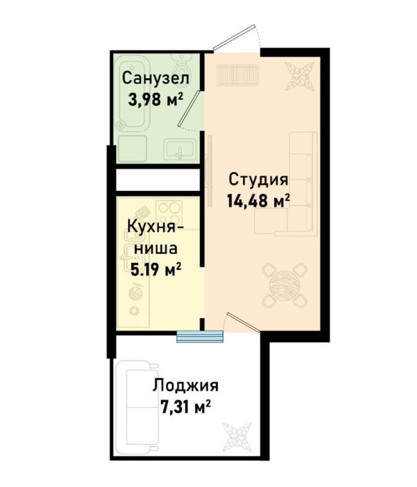 Студия площадью 30,96 кв.м в ЖК «Бухта Счастливая».