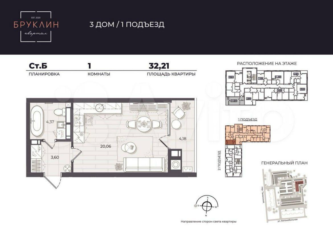 Продается студия в лучшем ЖК города ! ЖК Бруклин!