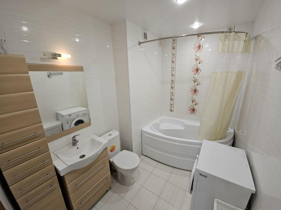 Шикарный ремонт, двухуровневые натяжные потолки, ламинат, теплый пол в санузле