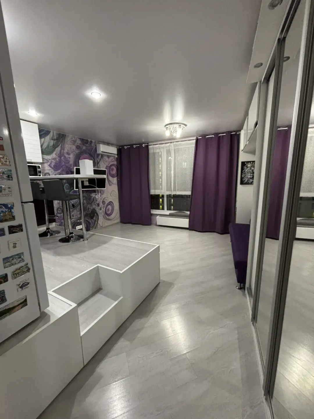 Состояние: отличное, сделан евроремонт из качественных материалов. Просторная комната разделена на зоны : спальня, функциональная кухня с встроенной техникой. Санузел в квартире совмещенный с полноценной ванной и местом для хранения. Преимуществом квартиры является большой метраж для данного типа квартир, с полноценной прихожей с организованной зоной для хранения. Квартира продается полностью меблированной со всей техникой. Заезжай и живи!