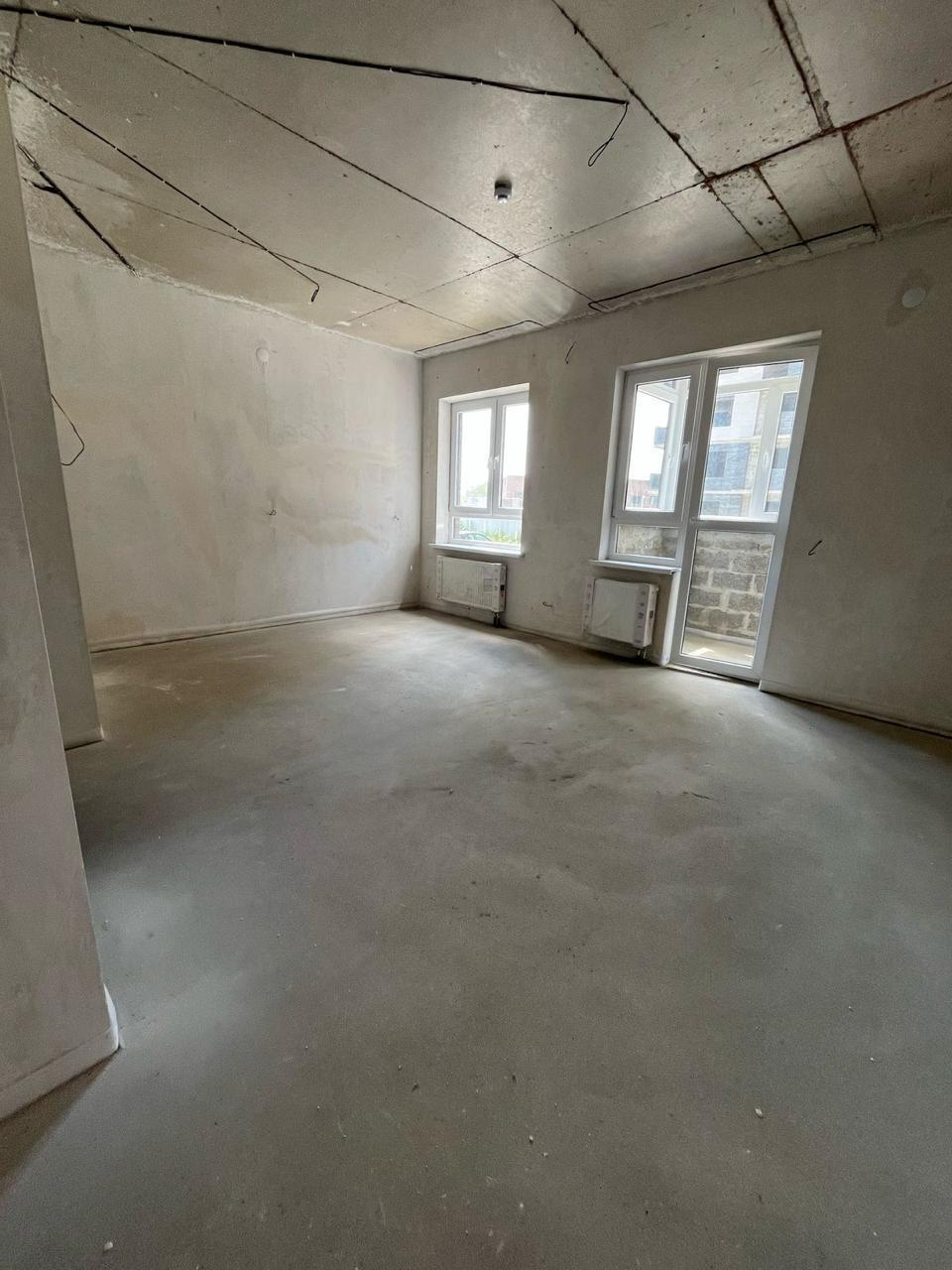 Просторная новая студия в современном жилом комплексе с предчистовой отделкой. Высота потолков — 2,9 метра. Квартира расположена не в углу, поэтому она теплая и светлая. Из окон открывается вид на наружный двор.