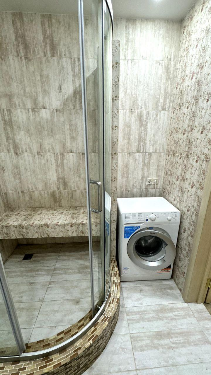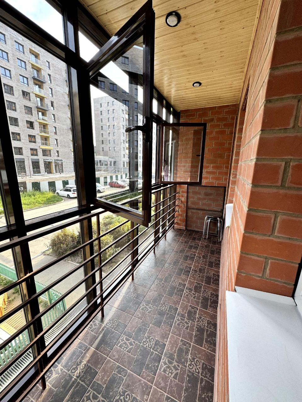 Очень большая лоджия- балкон. И есть большая закрытая общая зона куда можно поставить коляску, велосипеды и тд.