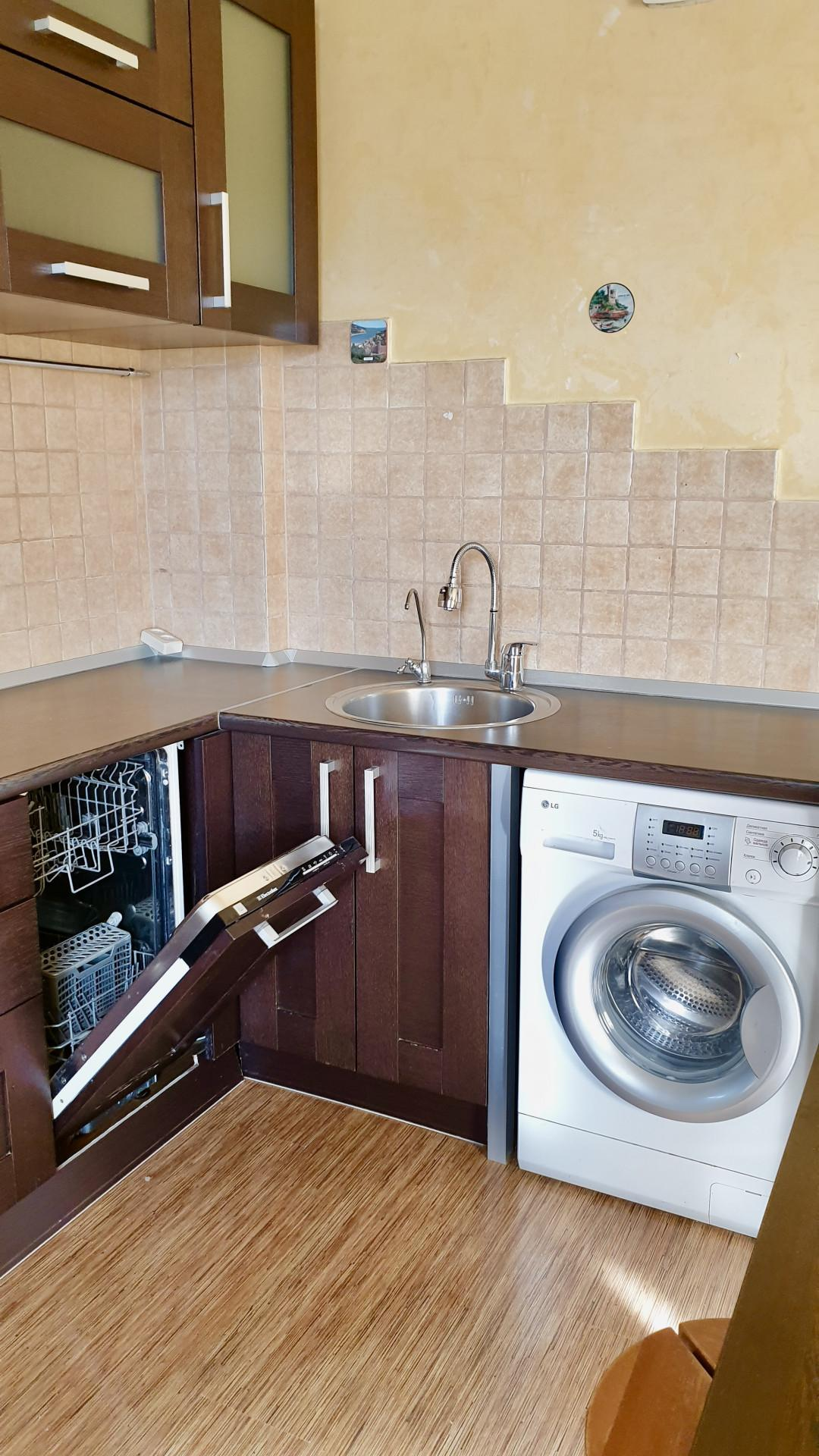 Готовая кухня: итальянский гарнитур, посудомоечная машина, духовой шкаф, фильтры для воды — готово к проживанию.