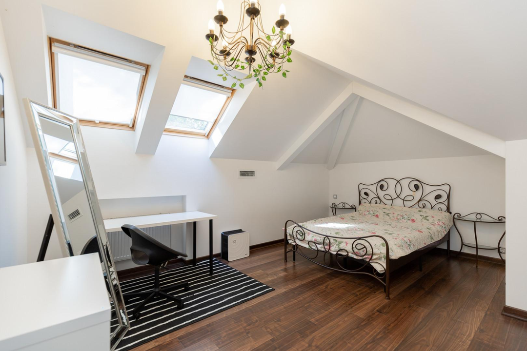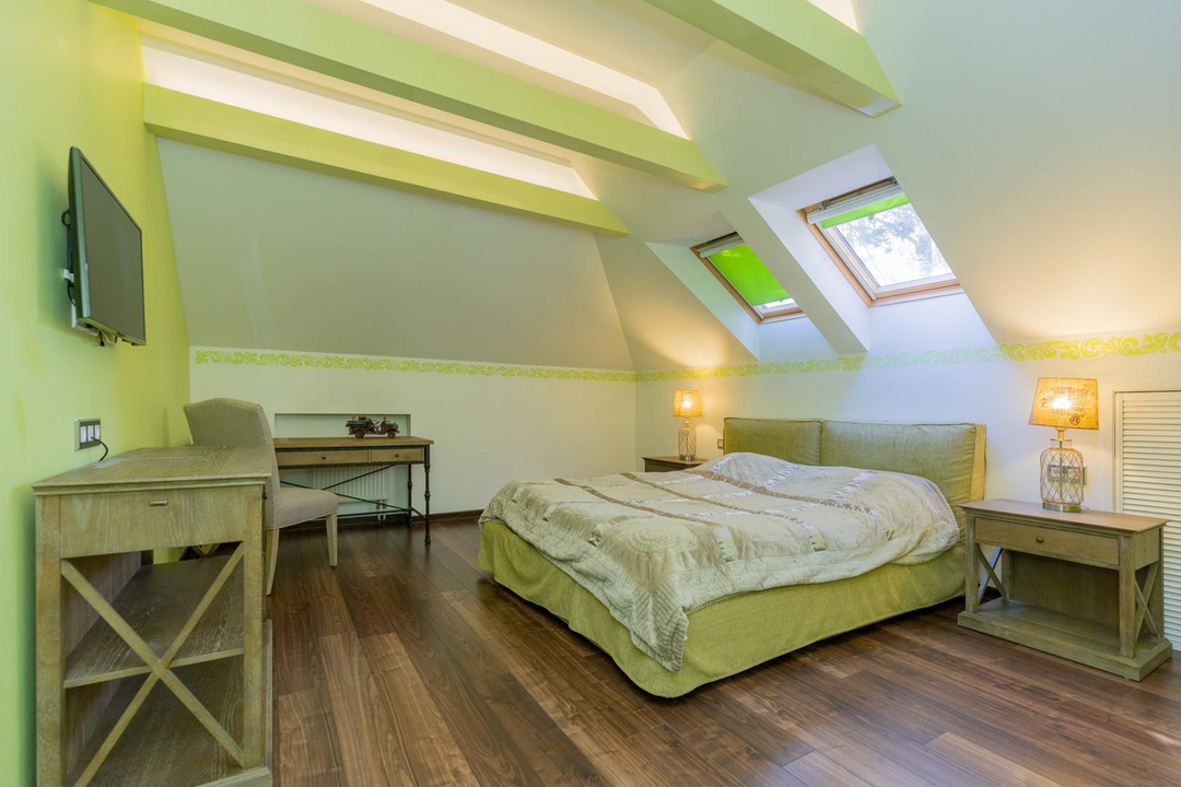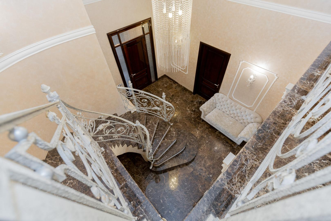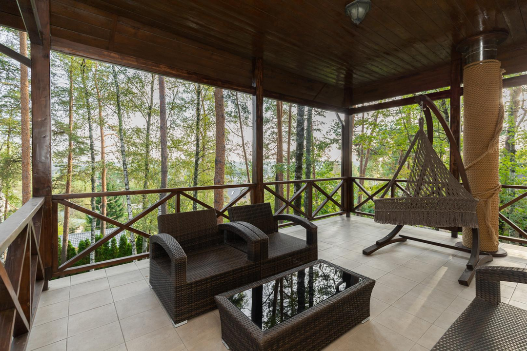 Дом площадью 572 кв. м, состоящий из 4 этажей, расположен на небольшом склоне, что обеспечивает великолепные виды. Первый этаж включает в себя просторную кухню, светлую столовую, уютный зал с биокамином, гостевую спальню с санузлом и отдельный гостевой санузел. Также предусмотрен выход в гараж на 2 автомобиля. На втором этаже расположена хозяйская спальня с собственным санузлом и гардеробной, две детские спальни, каждая с санузлом и гардеробной, а также кабинет с санузлом. Мансарда порадует вас двумя гостевыми спальнями с санузлом, большой комнатой с домашним кинотеатром и игровой зоной. Цокольный этаж — это настоящий оазис отдыха с банным комплексом, сауной, хамамом и зоной отдыха. Две открытых и одна закрытая веранда с мангалом станет идеальным местом для летних вечеринок.