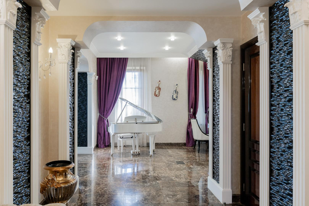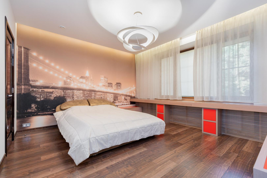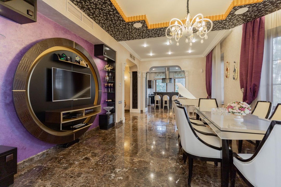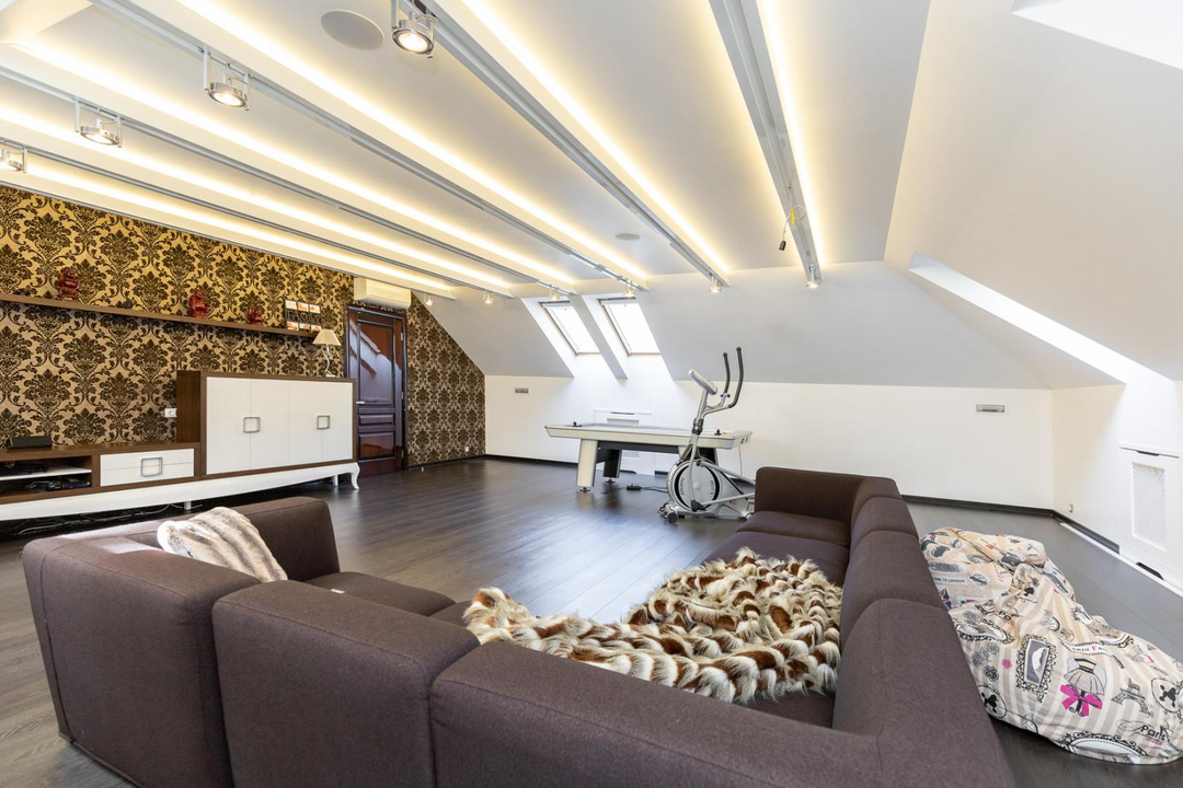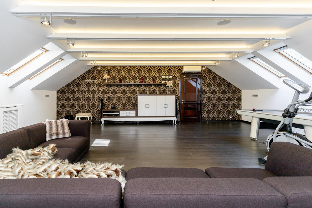 Интерьеры дома оформлены с использованием качественной мебели, изготовленной на заказ — это говорит о высоком уровне комфорта и стиля.