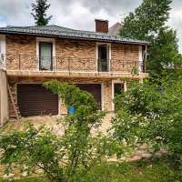 На участке отдельная постройка (2 этажа): на 1-м этаже гараж на 2 машиноместа, на 2-м помещения для персонала (3 спальни, кухня, санузел).