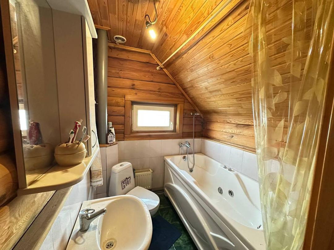 Санузел на первом этаже оборудован душевой кабиной, на втором этаже установлена акриловая ванна