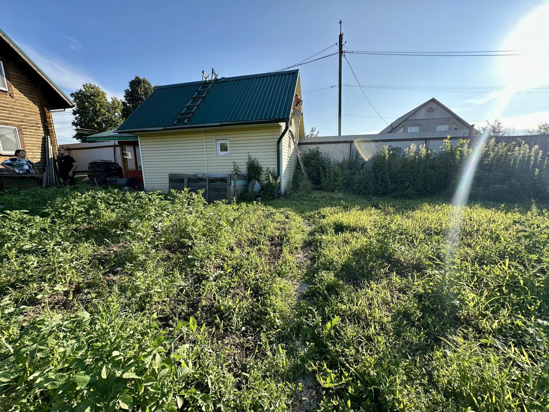 Придомовая территория - просторный крытый двор для 2 машин + капитальный хоз. блок , за домом расположена баня и небольшой огород с теплицами. Забор по внешним сторонам из профлиста. Дом и двор на ленточном фундаменте.