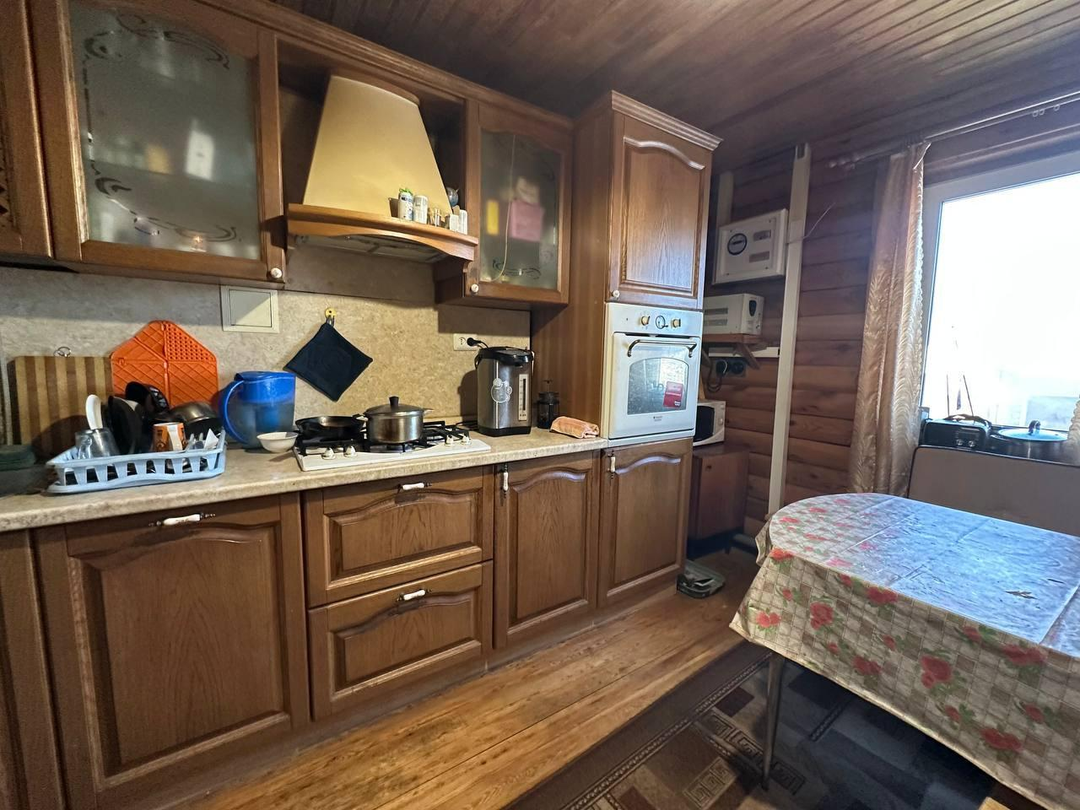 Просторная Гостинная с камином, кухня с гарнитуром и встроенной техникой (фасады из натурального дерева)+ установлен газовый котел (хорошая экономия на отоплении).
