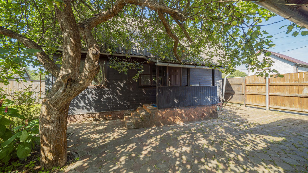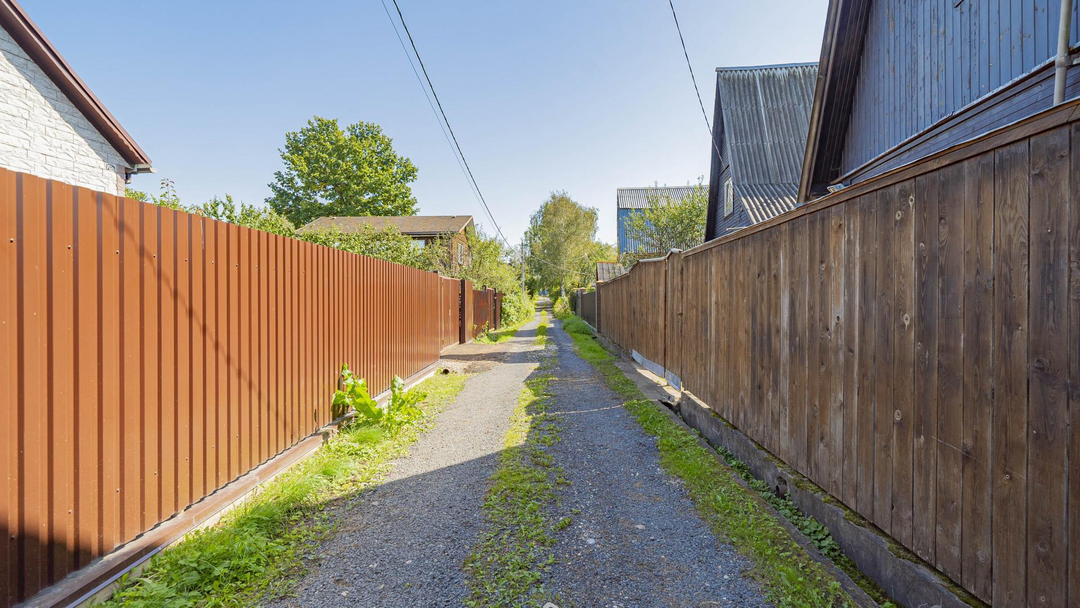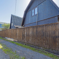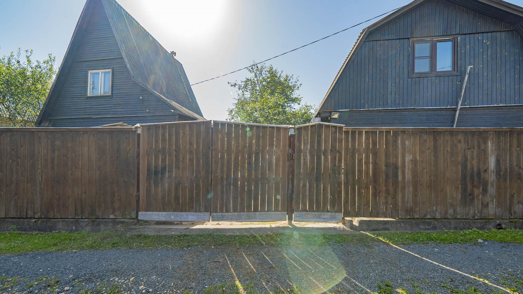 Участок 6 соток:Форма: правильная, межевание выполненоОграждение: металлический листПодъезд: дорога из асфальтной крошкиБаня с купельюДвухэтажный хозблок 100 м²