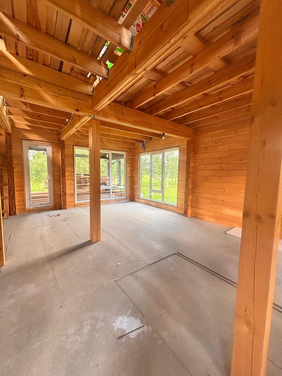 Представляем вашему вниманию Коттедж 112 м² из экологически чистого клееного бруса, готовый под чистовую отделку. Надежный фундамент на железобетонных сваях, кровля из металлочерепицы, двойные стеклопакеты – все для вашего комфорта.