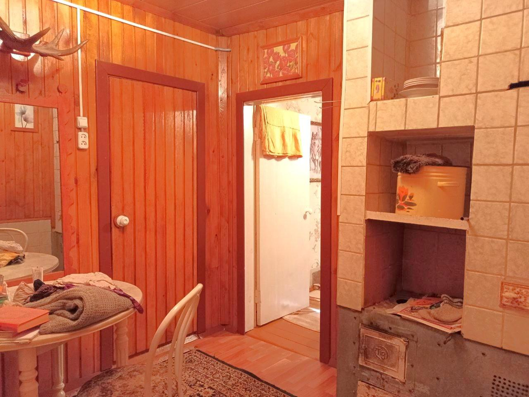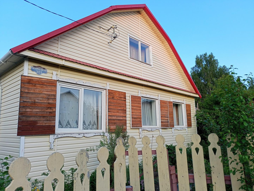 Дача на Монзино. Ухоженная дача с участком 5 соток земли в СНТ Металлист. Дом из бруса, крыша из красного оцинкованного профлиста с организованными водостоками, окна закрываются ставнями. В доме - печь, облицованная керамической плиткой, просторная мансарда, веранда, кладовки, туалет. Внутри дома стены обшиты доской-вагонкой с текстурной окраской под сосну. На второй этаж ведет красивая пологая лестница из натурального дерева. Окна - стеклопакеты ПBX. В гостиной установлен электрический камин для тепла и уюта. Большая кухня оборудована гарнитуром со сливом из умывальника в дренажную емкость на улице. Для готовки газовая плита с питанием от баллона.