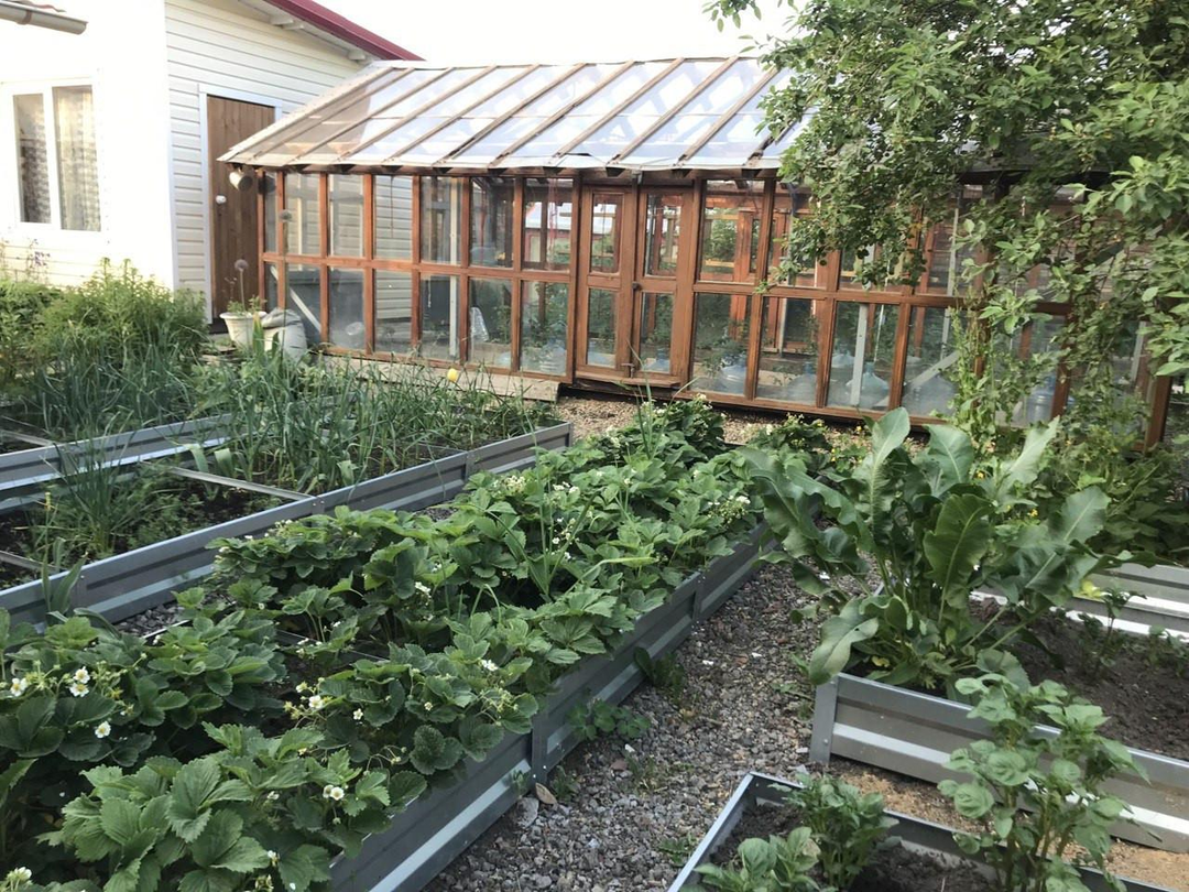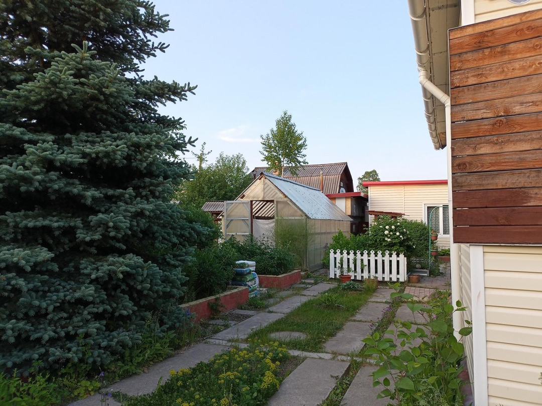 Участок разработан, имеются ягодные кусты, плодовые деревья, много многолетних цветов. Обустроены грядки, оформленные оцинкованными листами. Есть две капитальные 6-метровые теплицы на основании из 20-го швеллера. На участке свой колодец, вода для мытья и полива. Также проведен летний водопровод с подачей воды по определенному расписанию.