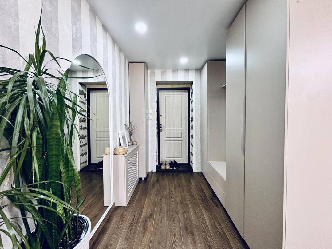 Первый этаж представляет собой просторный холл, современную кухню-гостиную, удобную ванную комнату, вместительную гардеробную и комфортную веранду, ведущую в сад.