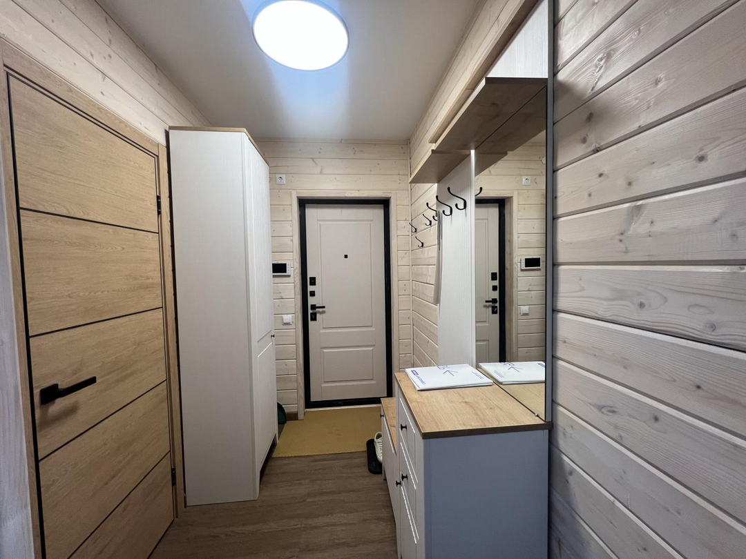 1 этаж: прихожая, кухня-гостинная, санузел, открытая веранда.