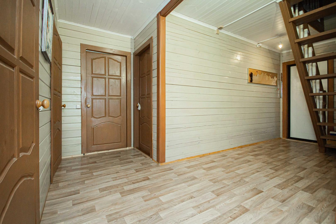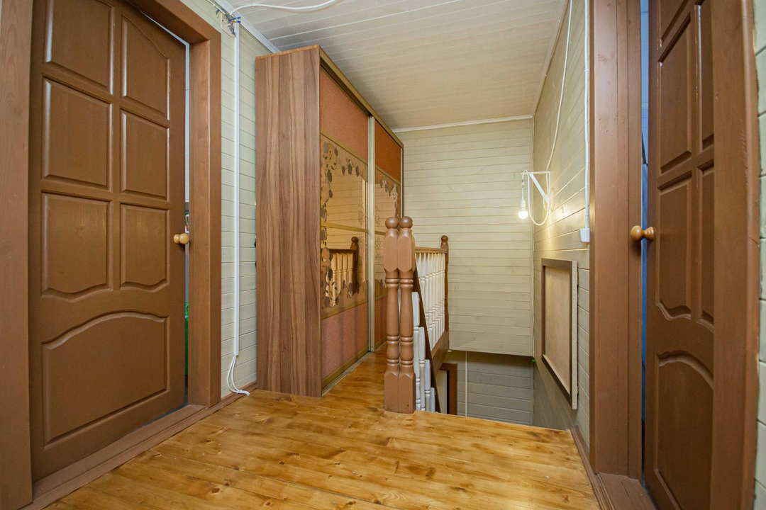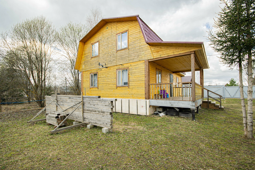 ХАРАКТЕРИСТИКИ ДОМА:Площадь: 120 кв.мКомнаты: 5 комнат (12 кв.м, 7 кв.м, 7 кв.м, 10 кв.м, 10 кв.м)Материал: 1 этаж — брусОблицовка: брусФундамент: Усиленные винтовые сваи (33 шт.)Крыша: МеталлочерепицаУдобства: Раздельный санузел внутри домаСостояние: Косметический ремонтКадастровый номер: 50:26:0080503:537
