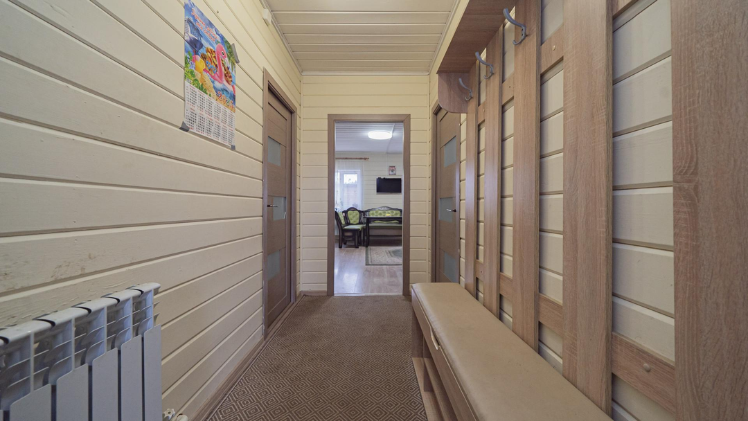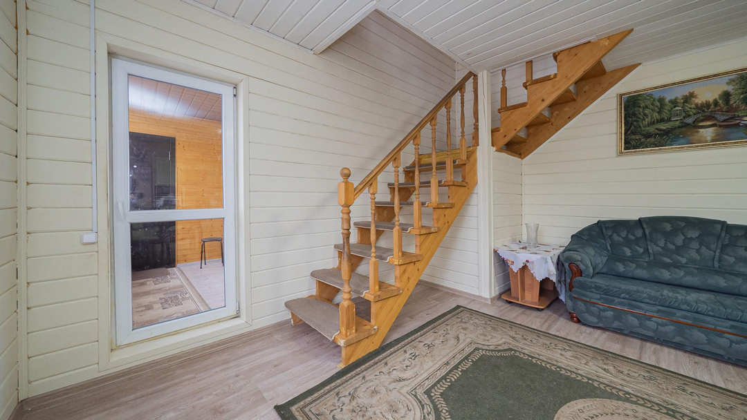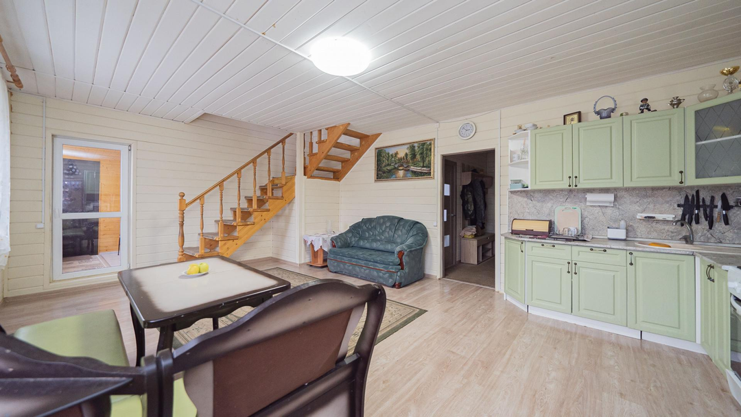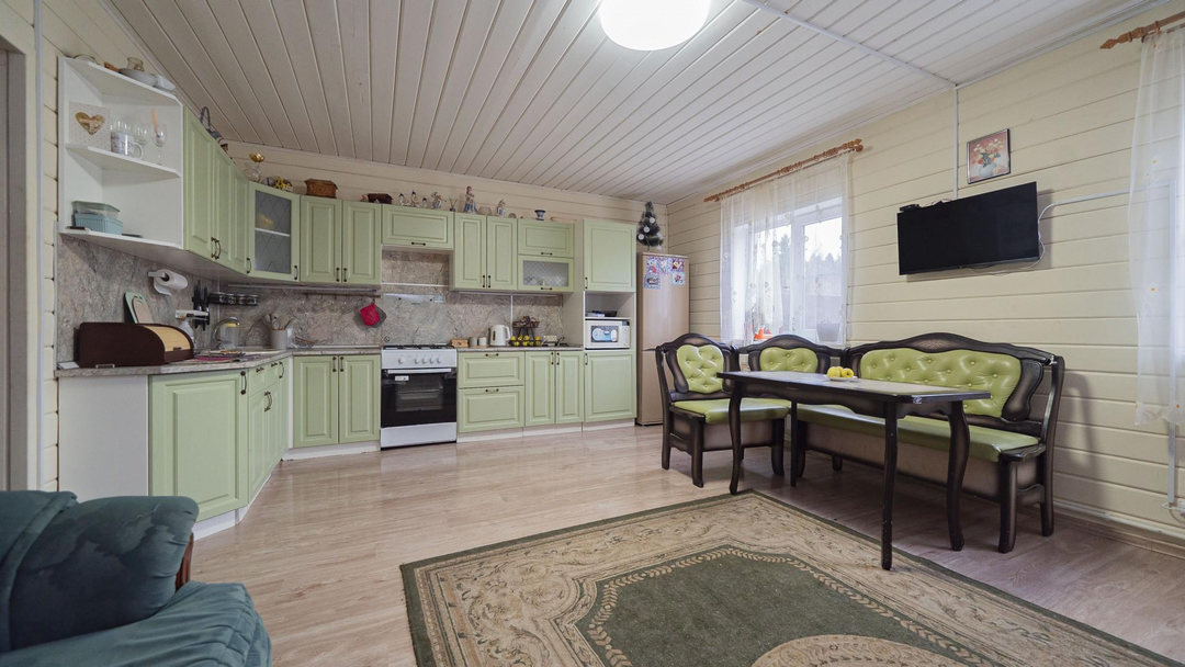 О ДОМЕ: (121,6 м², 2 этажа):3 изолированные комнаты: 15 + 15 + 18 м² - комфорт для всей семьиКосметический ремонтКачественные материалы:Экологичный брусЛенточный фундаментКрыша из металлочерепица Облицовка из сайдингаОдин взрослый собственникПосле продажи остается кухонный гарнитур, мебель и техника - по договоренности