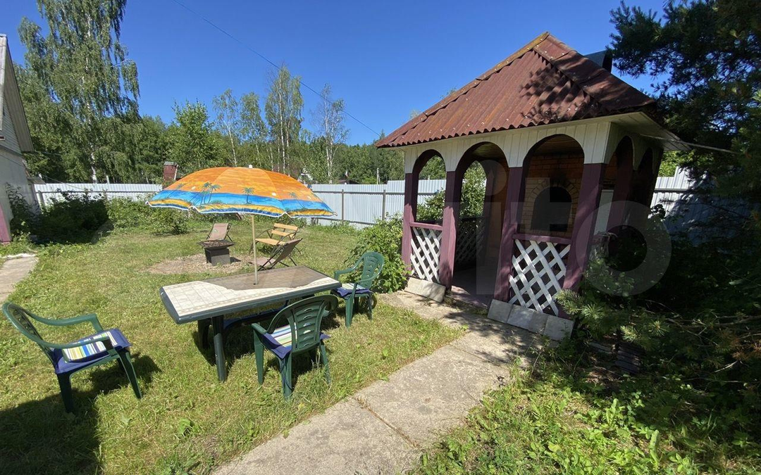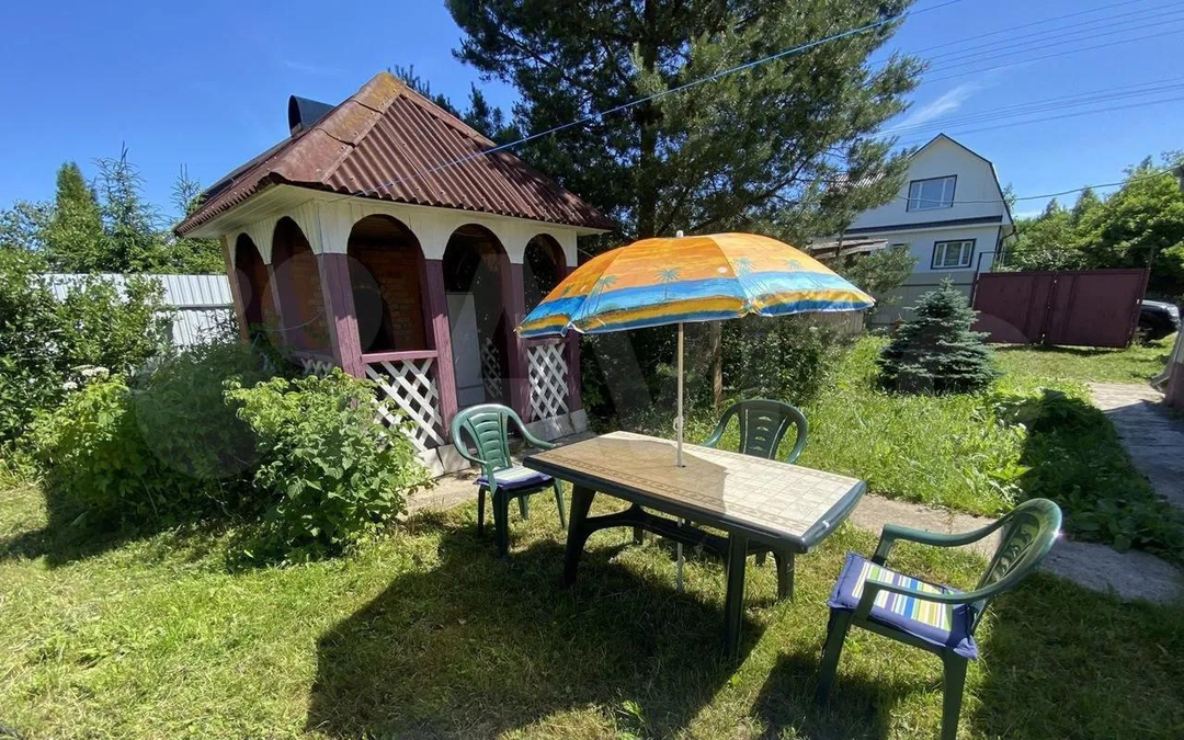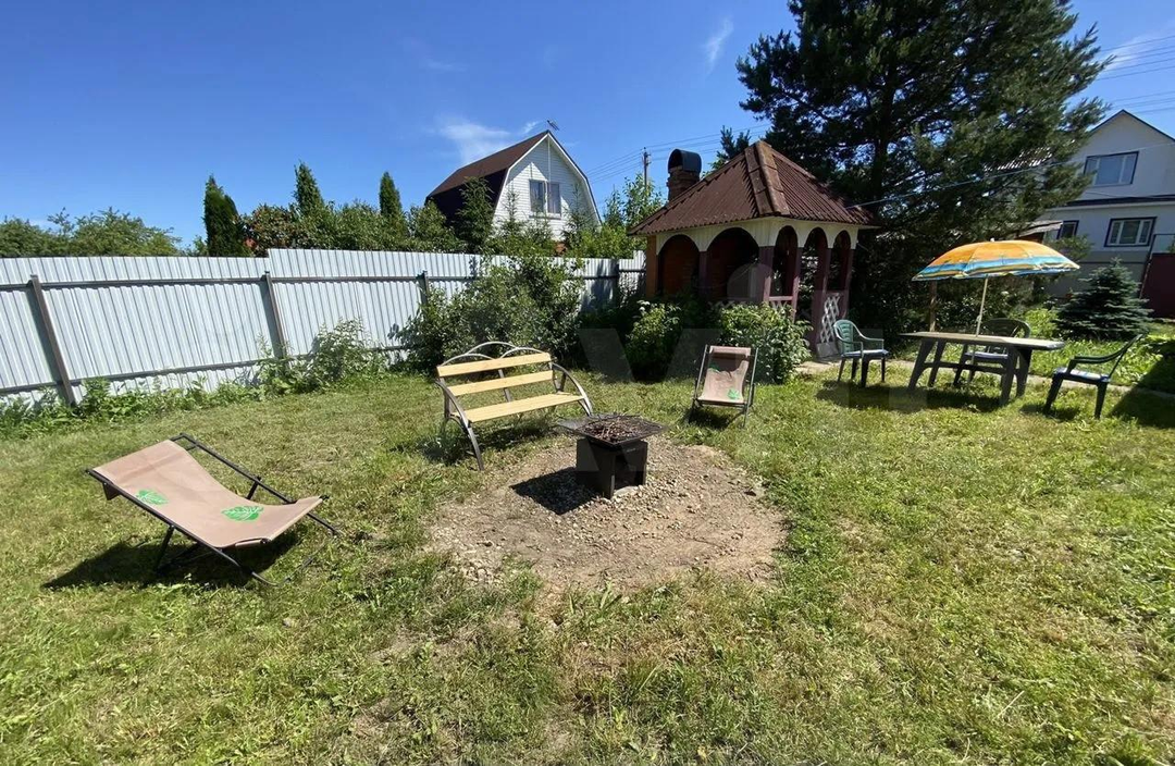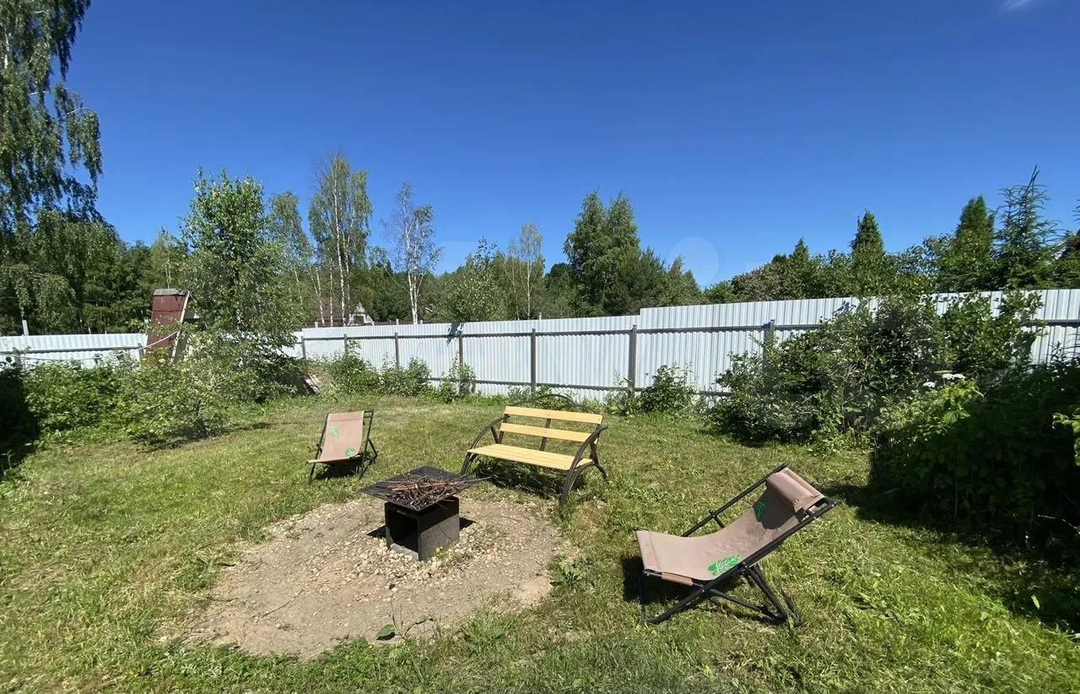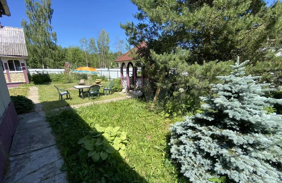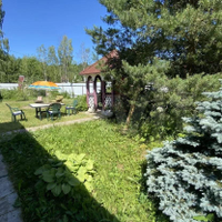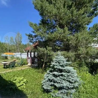 Участок ухожен, на участке газон, хвойные и плодовые деревья, ягодные кустарники.