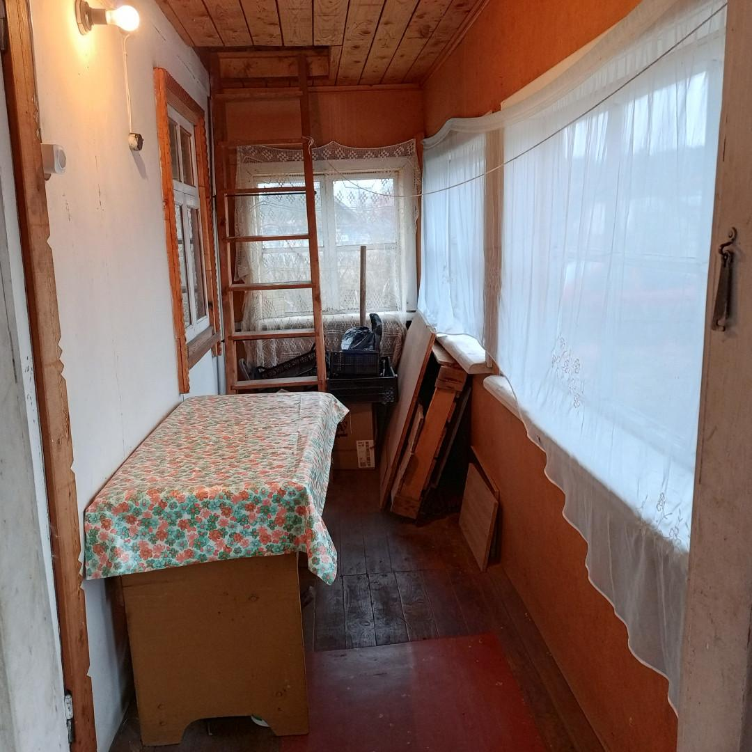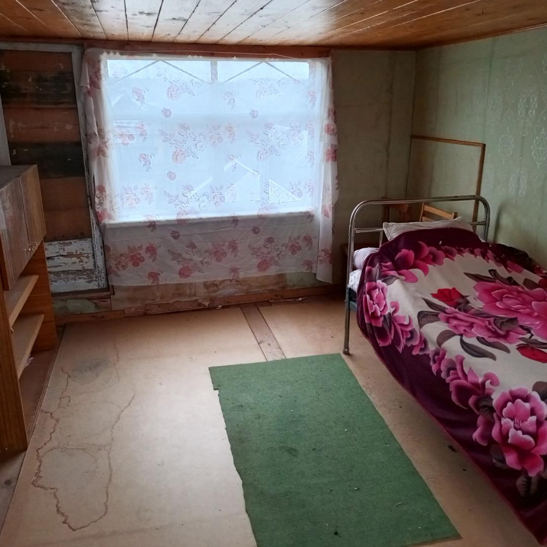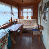 На участке расположен двухэтажный дом и отдельно стоящая (противопожарно!) баня (требует ремонта). В доме аккуратная веранда, кухня с мебелью, железная работающая печь. При необходимости, все, что на фото остаётся, в т.ч. садовый инвентарь. Добротная крыша покрыта металлочерепицей, недавно сделали новое покрытие. В доме проведено электричество, установлен счетчик учета э/энергии. Заливной фундамент из цемента. На участке две теплицы. Имеется отдельное хозяйственное помещение (для дров, инвентаря и т.п.). Из скважины производится подача воды в накопительный бак объёмом 1,5 куба и полив участка. Есть кусты смородины, малины, черноплодной рябины, из деревьев - яблоня. Соседи только с одной стороны.