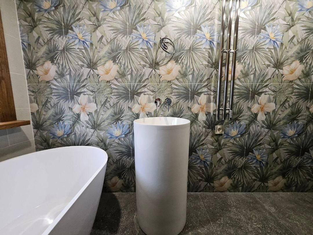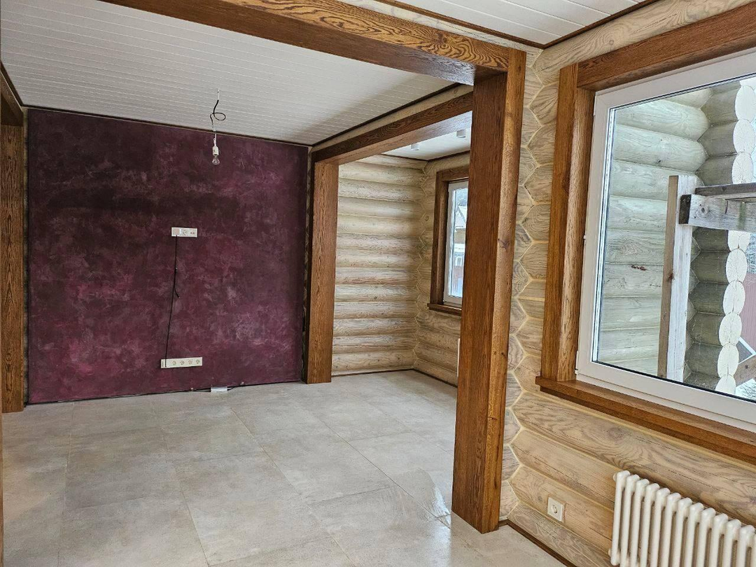 отделка: покраска стен в 3 слоя, кварц‑паркет и керамогранит на полах.