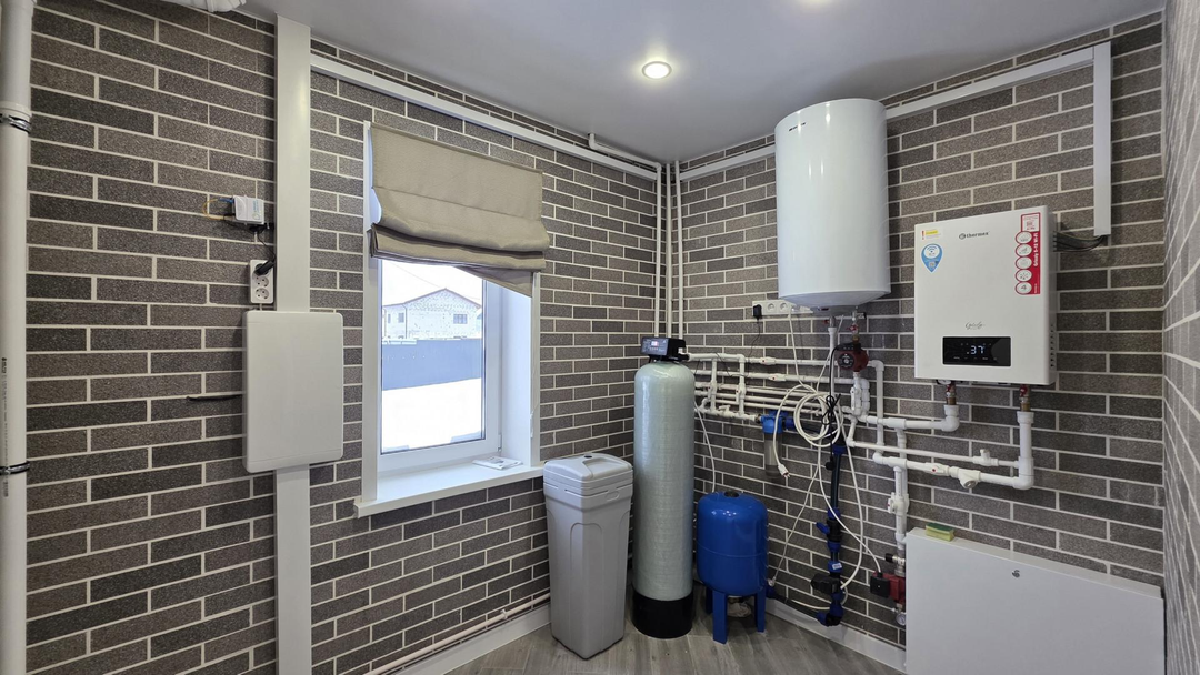 КОММУНИКАЦИИ: дом оснащён всеми необходимыми коммуникациями: электричеством мощностью 15 кВт, водоснабжением через скважину на 48 метров и био септиком для канализации, газ по границе посёлка.