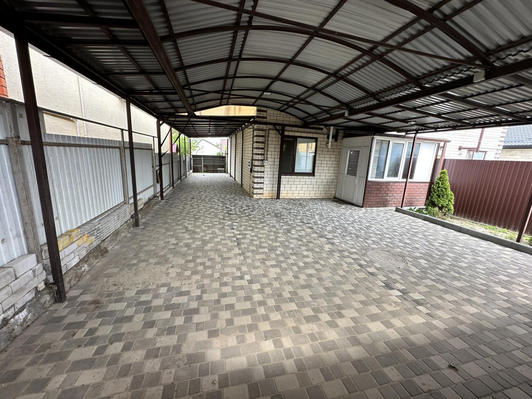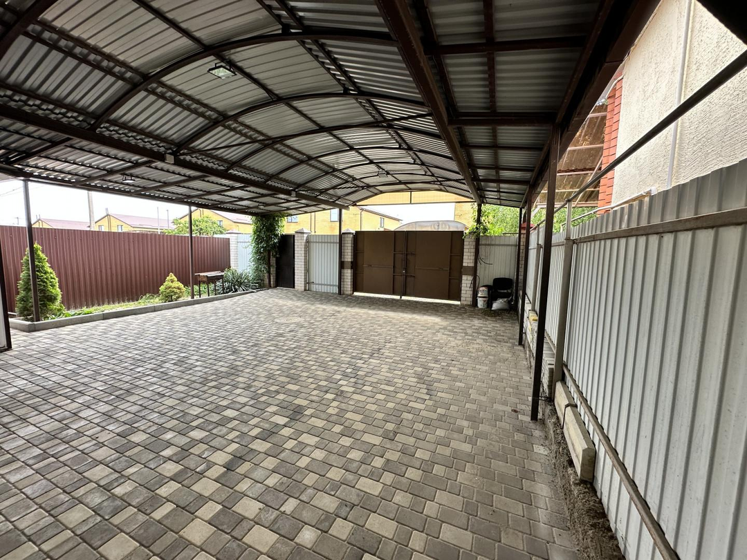 Участок:Земля в собственности.Весь двор вымощен брусчаткой.Навес над всей территорией двора.Хозяйственная постройка с подвалом.Вольер (легко переоборудовать в мангальную зону).Небольшой огород.