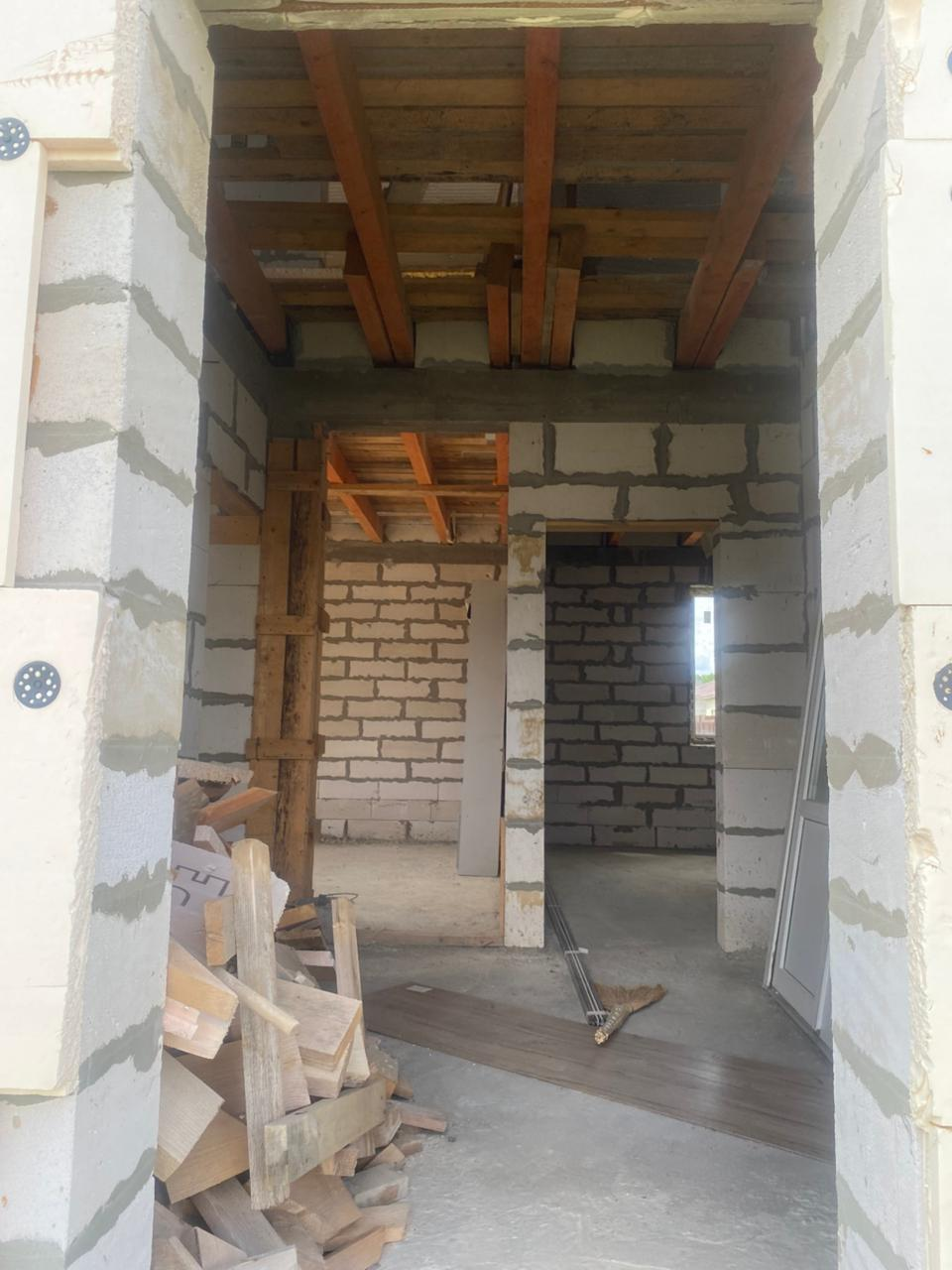 Дом в два этажа: 1 этаж - кухня/зал, коридор, комната, с/у 2 этаж - 3 спальни, коридор, с/у. Для постройки по желанию отдельной котельной закуплен бетонный газоблок.