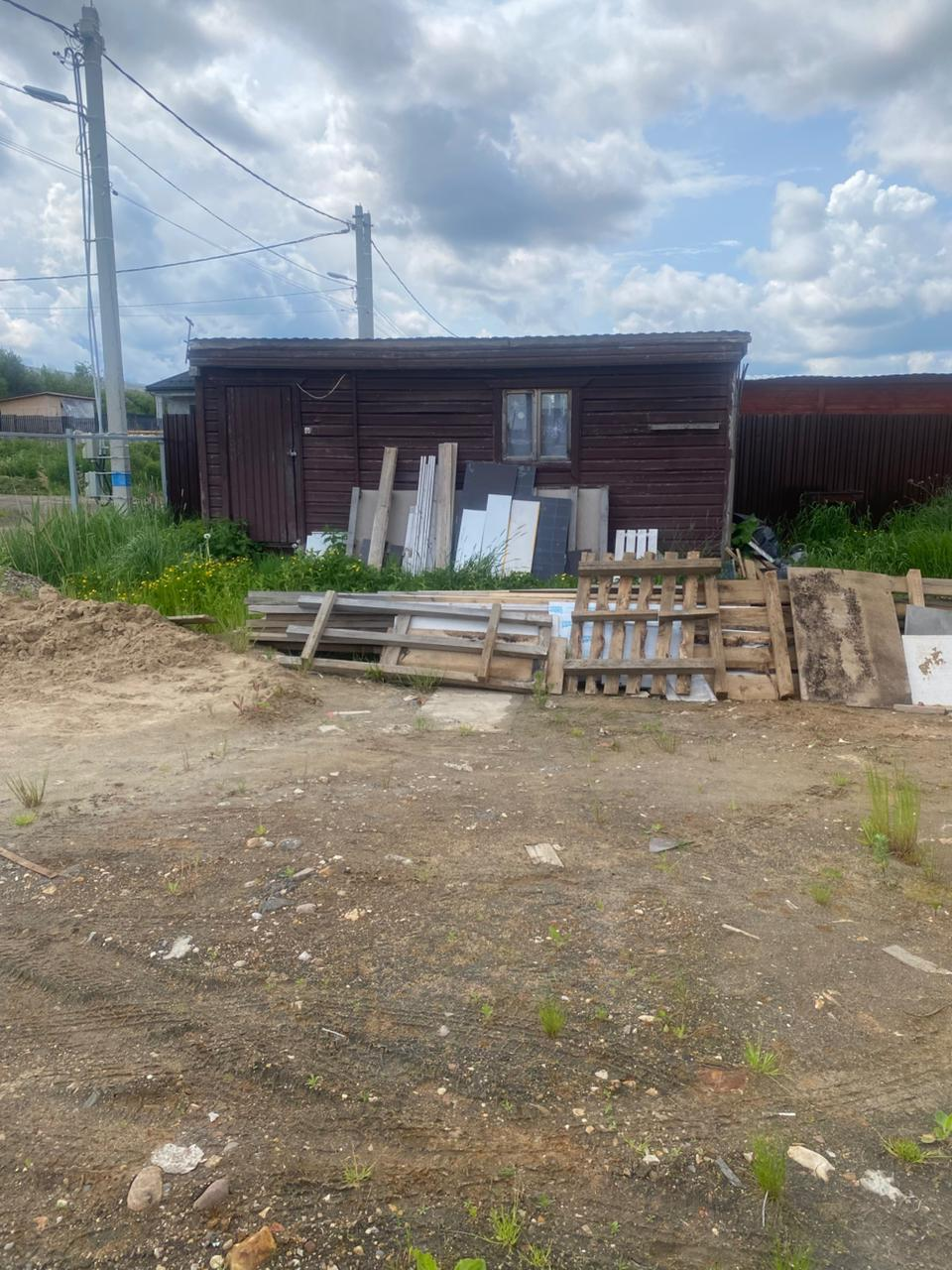 На участке бытовка, свет 10 КВ, колодец. Газ ожидается в этом году.