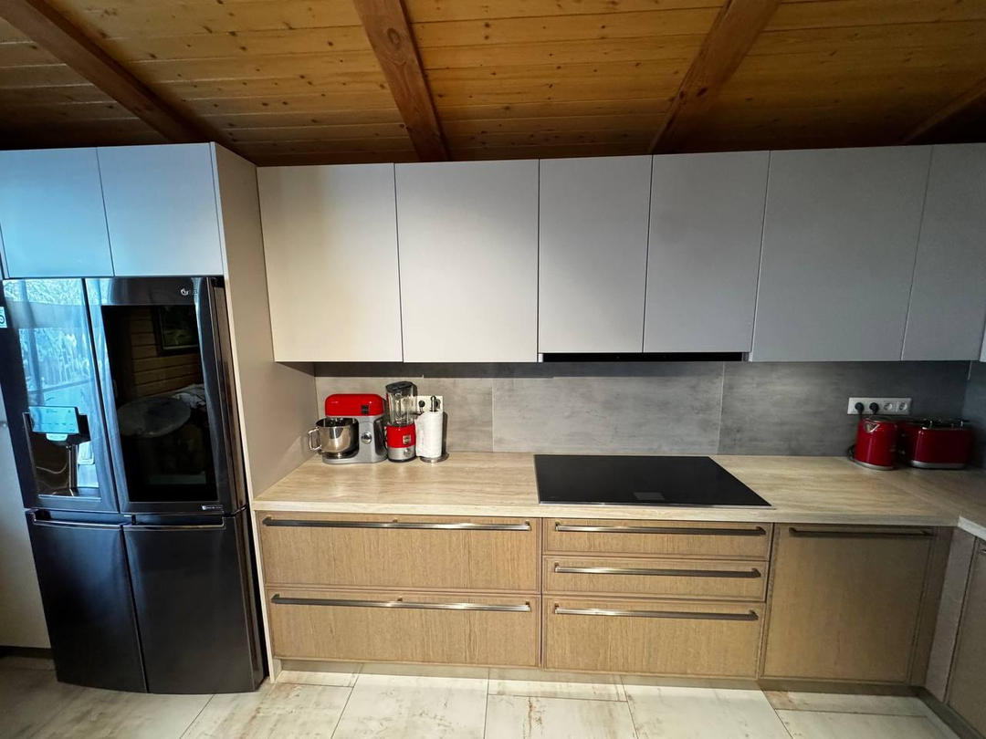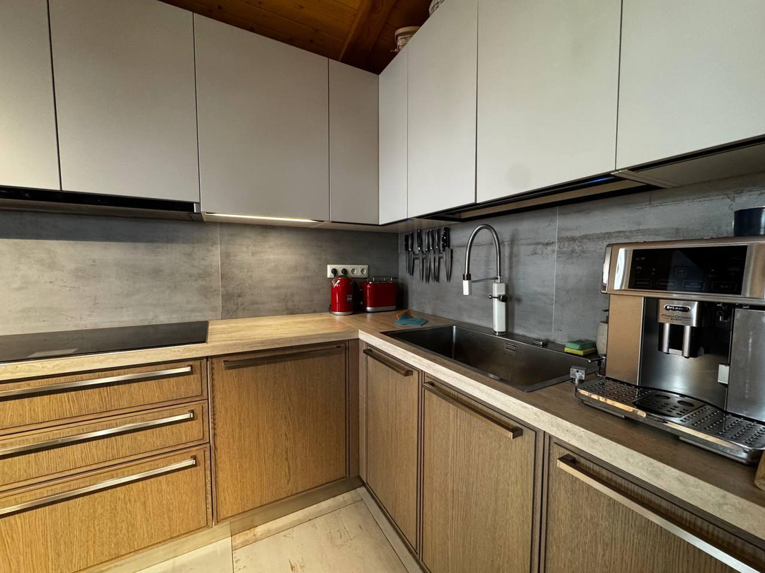 Техника и сантехника: итальянская кухня Mittel, техника Neff и LG, сантехника Jacob Delafon, Hansgrohe, Smeg, камин.