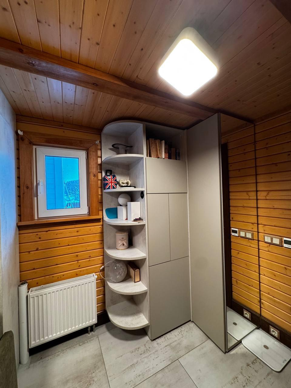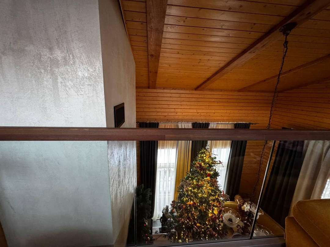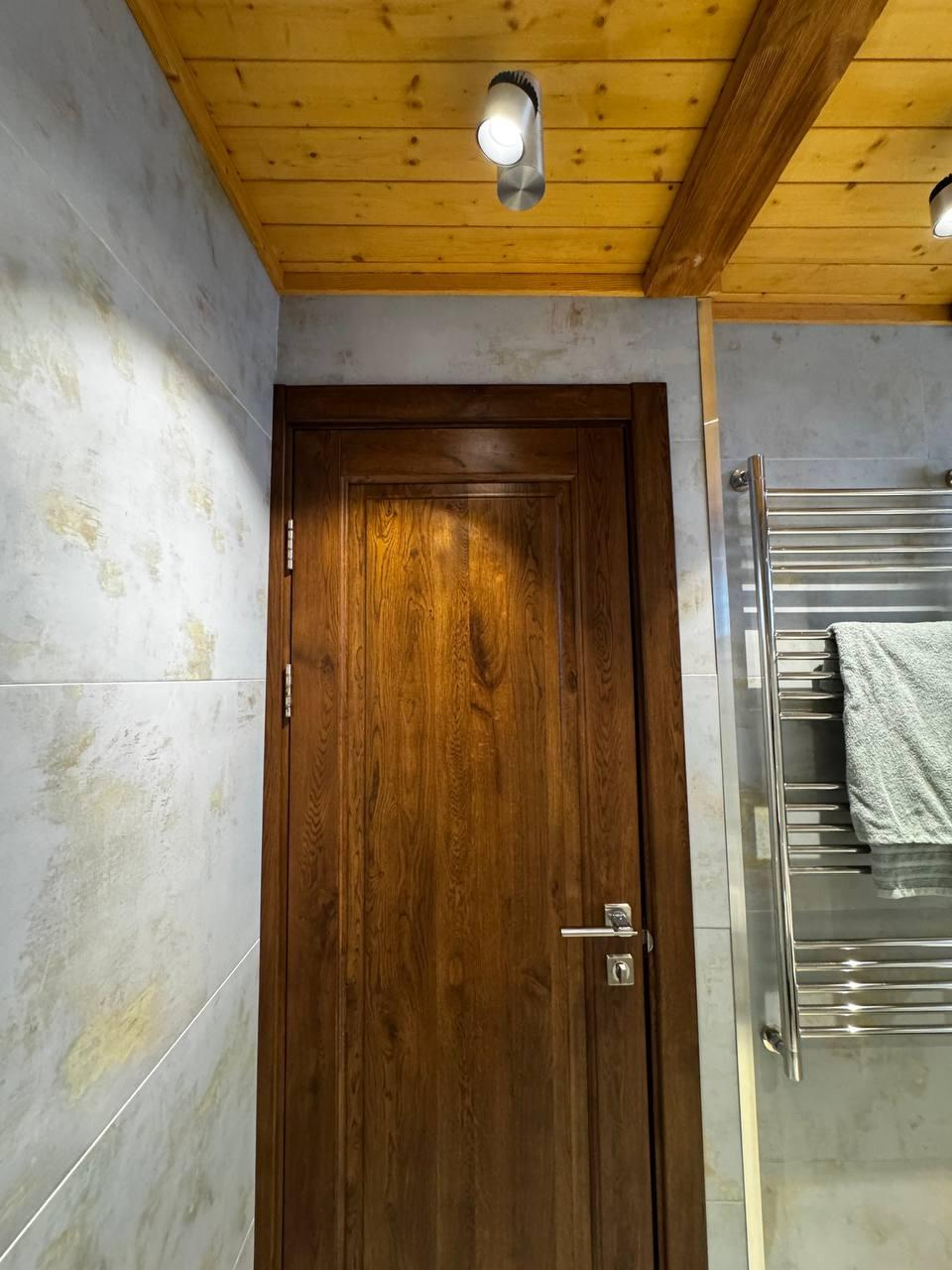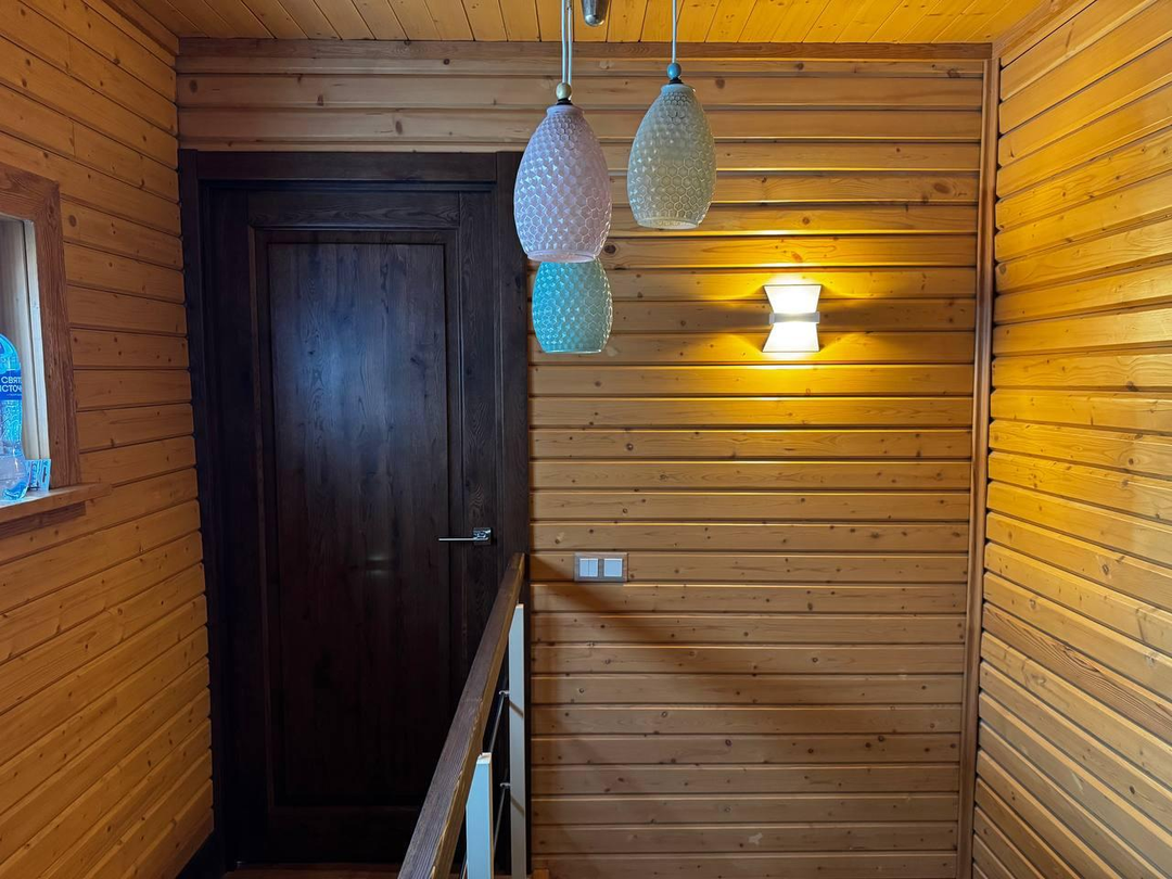 Отделка: клеёный брус, плитка (Италия, Испания), тёплые полы, паркетная доска со шпоном ясеня.