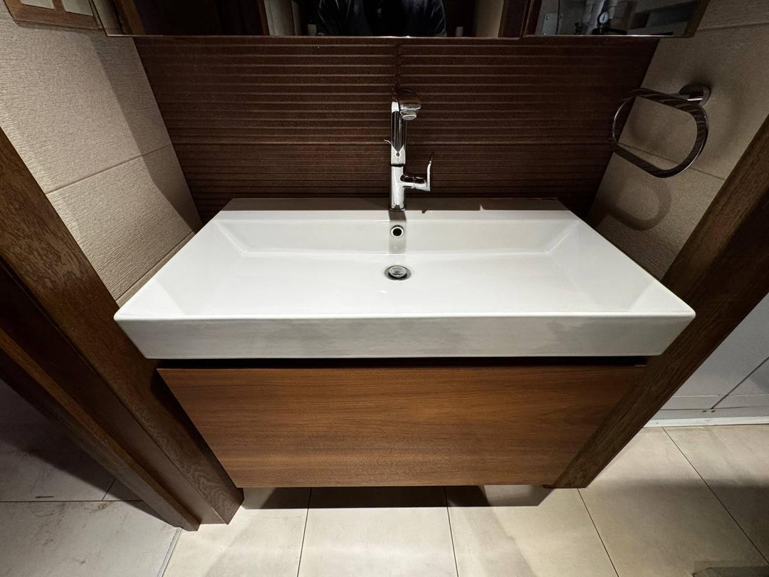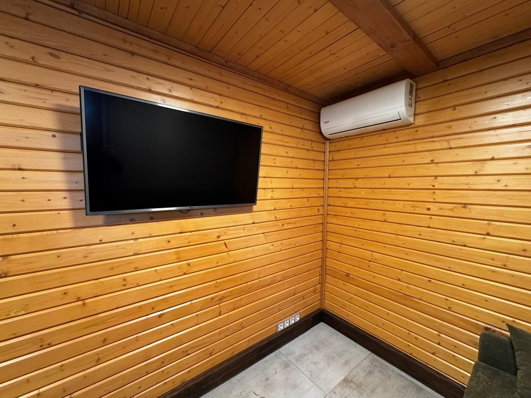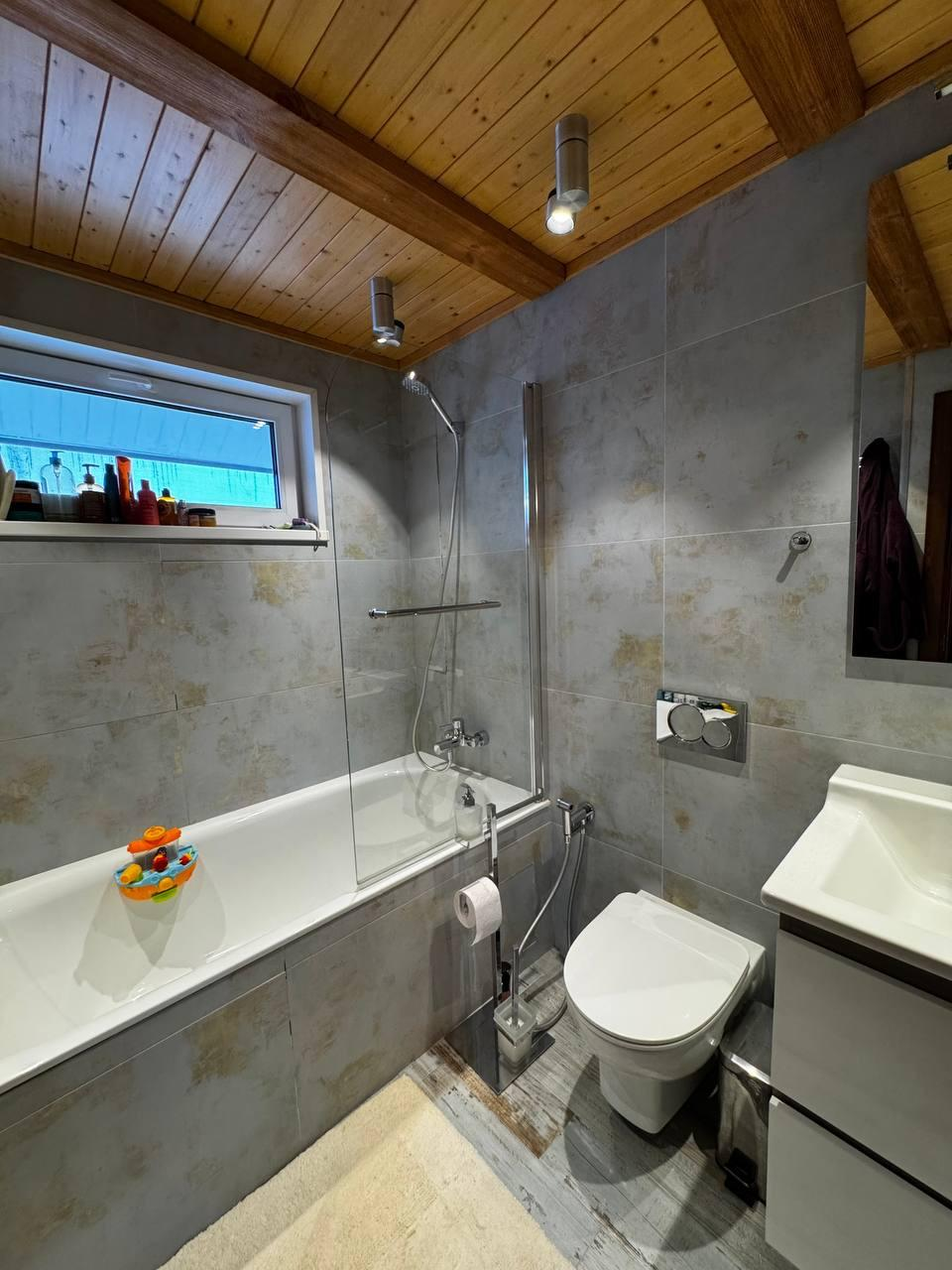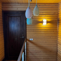 Отделка: клеёный брус, плитка (Италия, Испания), тёплые полы, паркетная доска со шпоном ясеня.