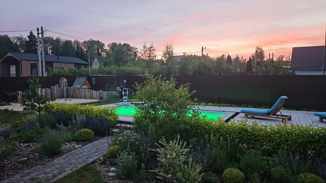 бассейн 3 × 6 м (с подогревом, противотоком, подсветкой);