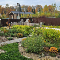 сад с плодовыми и декоративными деревьями;