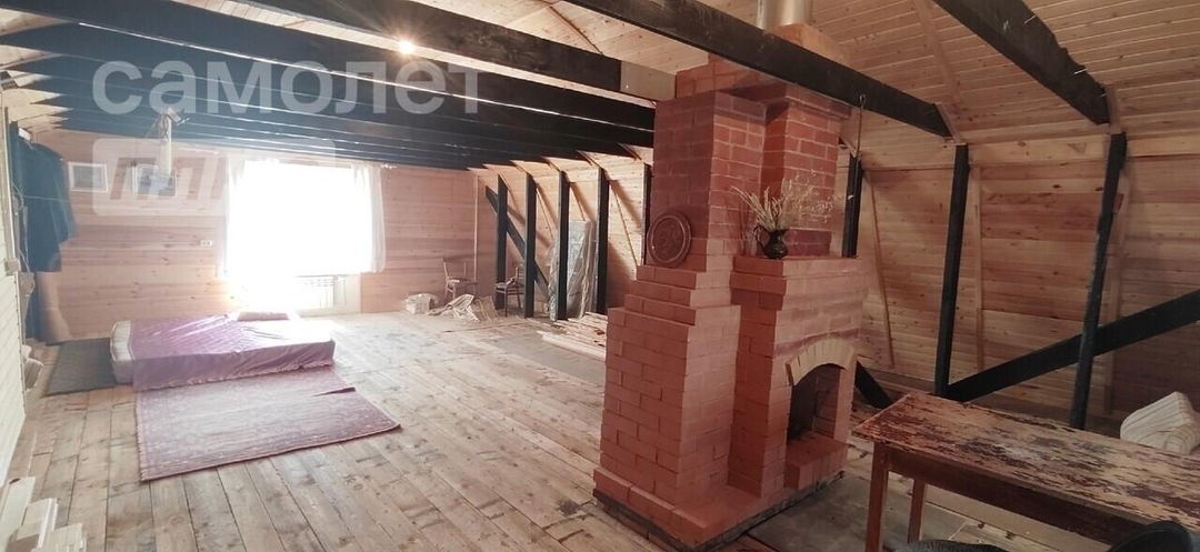 На втором этаже 1 комната и большое помещение не зонировано с двумя окнами и камином, можно разделить по своему вкусу.