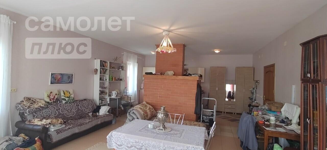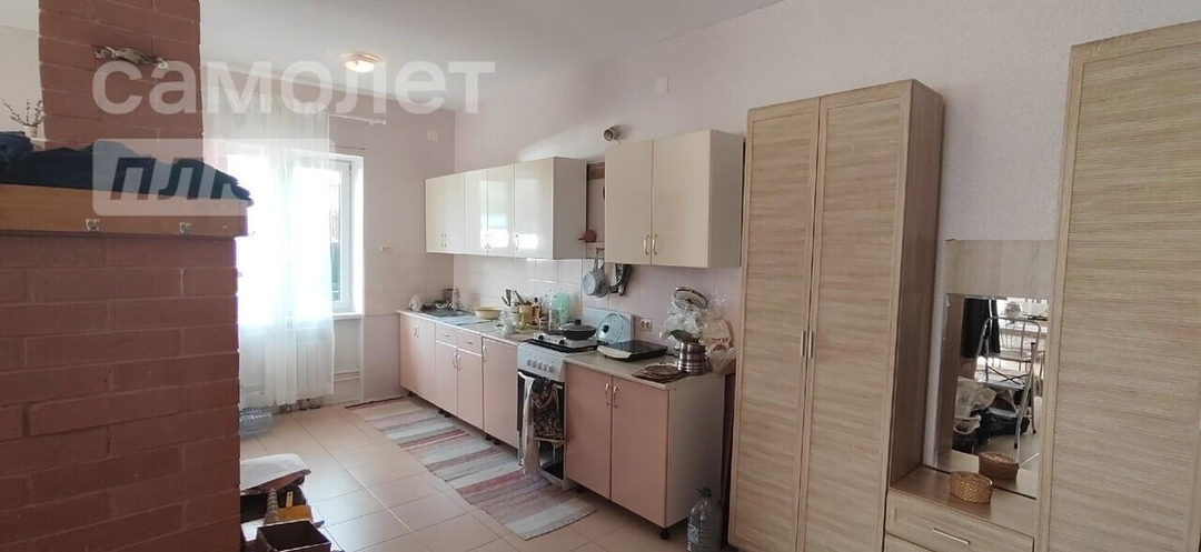 В доме на первом этаже просторная и светлая кухня-гостинная, с русской печкой, большая парадная.