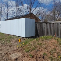 Территория полностью огорожена забором из профлиста с откатными воротами, так же на территории ведется видеонаблюдение. на участке построен гараж из кирпича и банька.