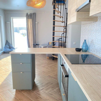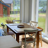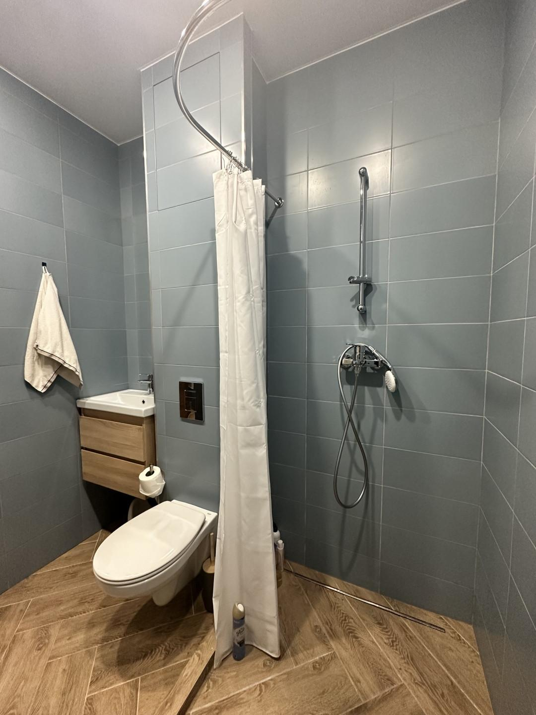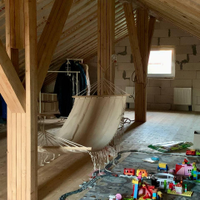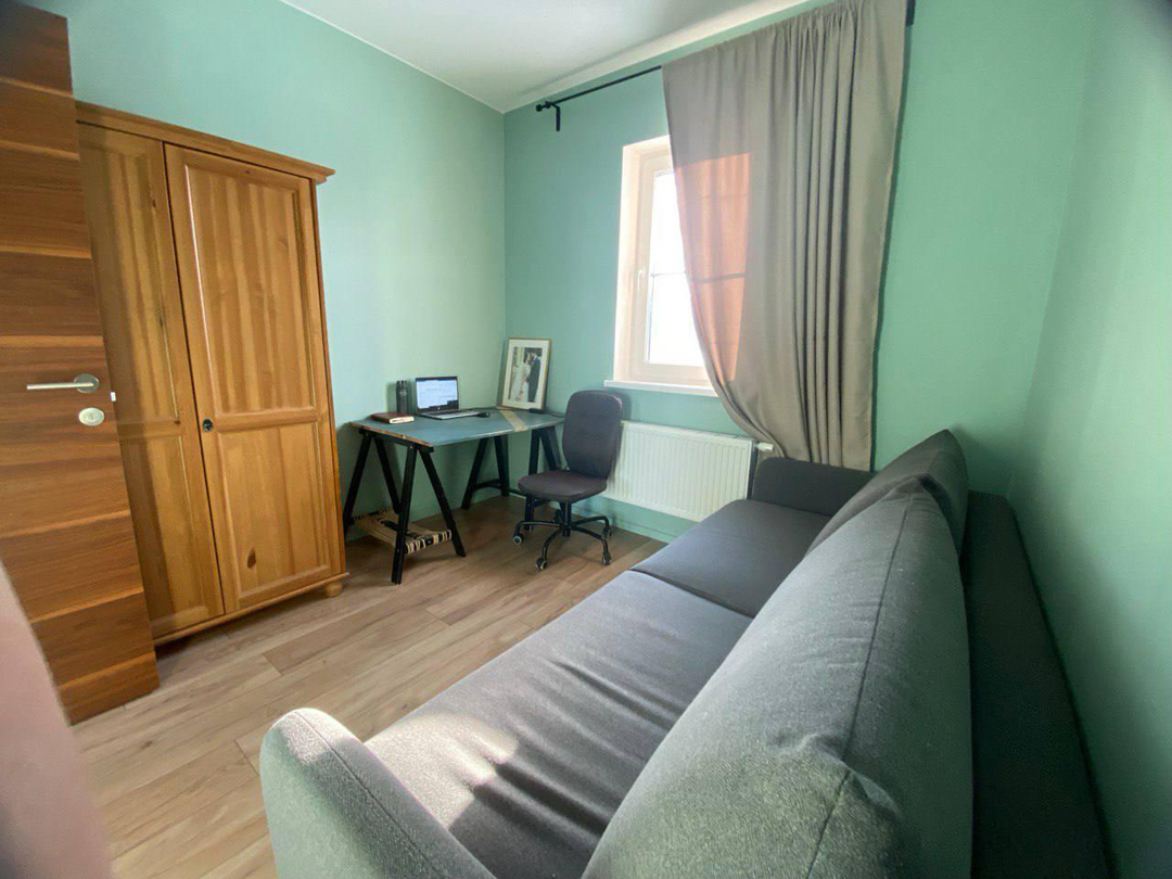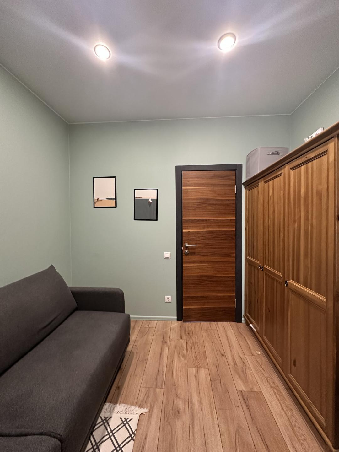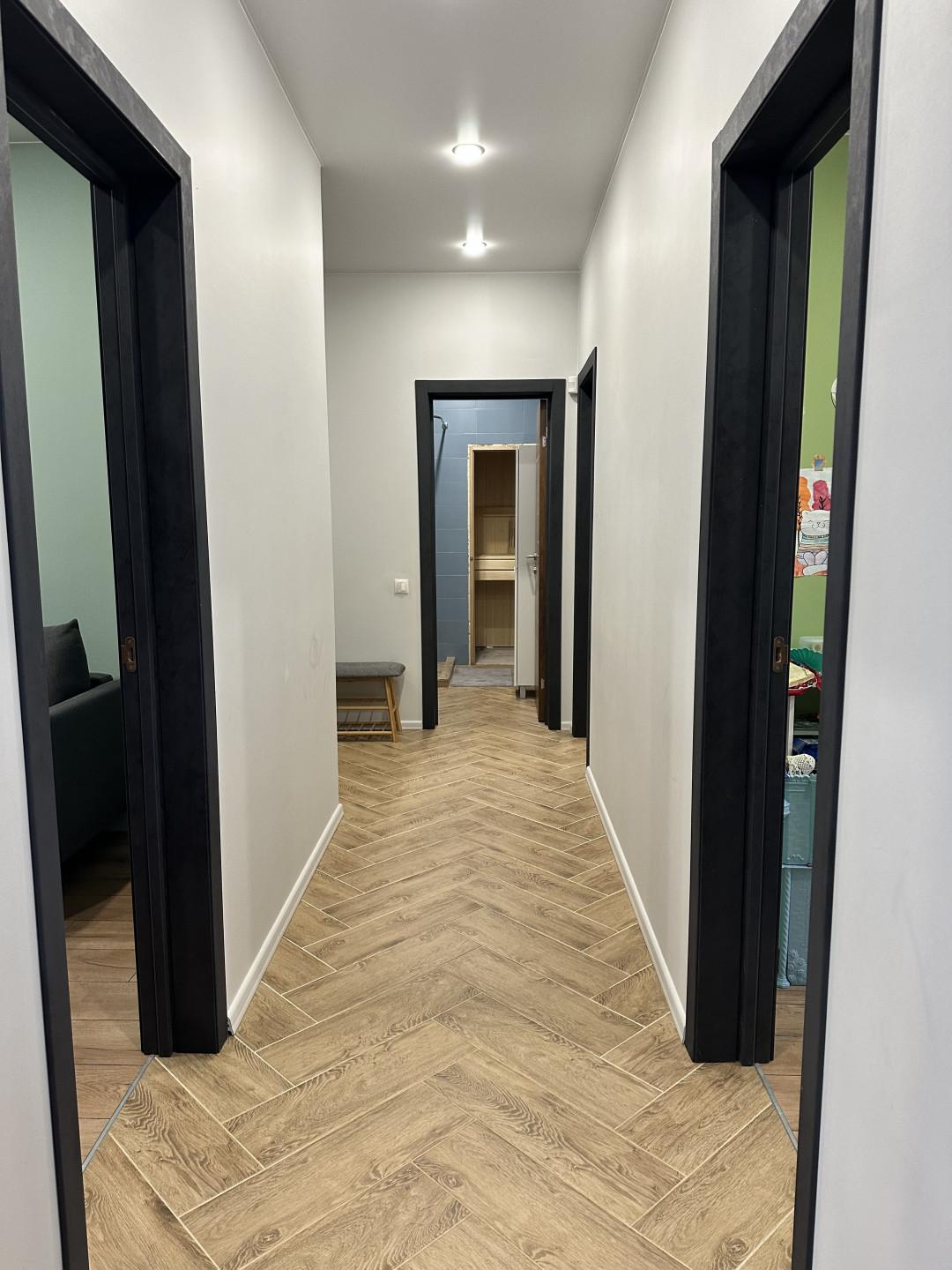 Первый этаж - большая кухня-гостинная, мастер - спальня (спальня со своей ванной комнатой), детская комната, кабинет (гостевая комната) , душевая, с/у и сауна, бойлерная. Кухня IKEA, полностью оборудованная, установка июль 2022( наверно, мы были последними))