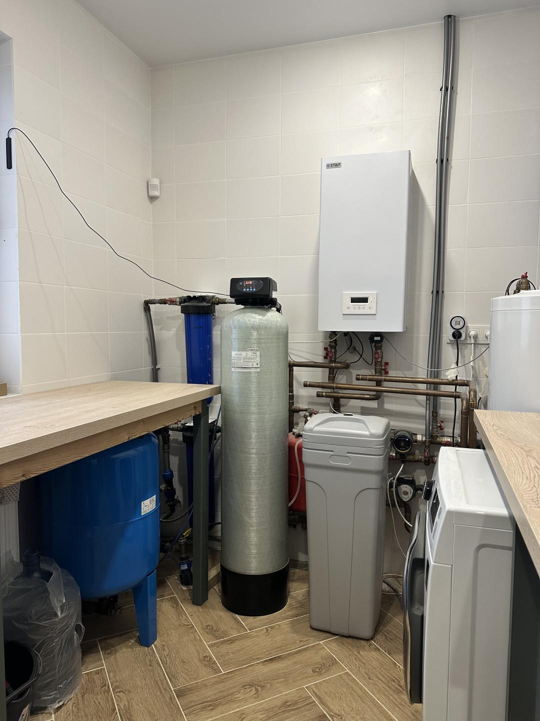 Отопление в доме радиаторы+ очень комфортный теплый пол, не холодно ни жарко никогда. Даже зимой ходим босяком). Котельная и коммуникации полностью от Stout, развязка медью, водоснабжение сшитый полиэтилен.
