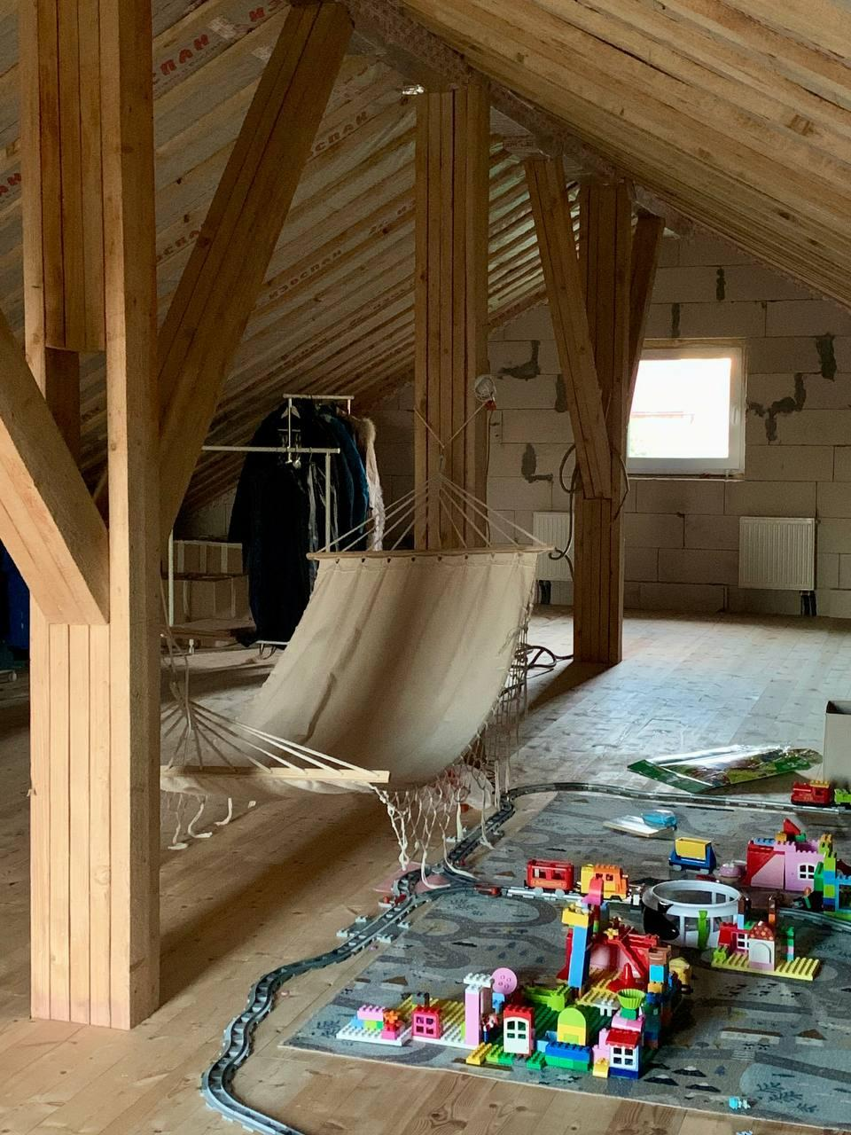 Второй этаж- мансарда, пол- шпунтованная доска 3,8 мм, открытое пространство. Проведены коммуникации для санузла, есть выход для балкона.