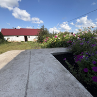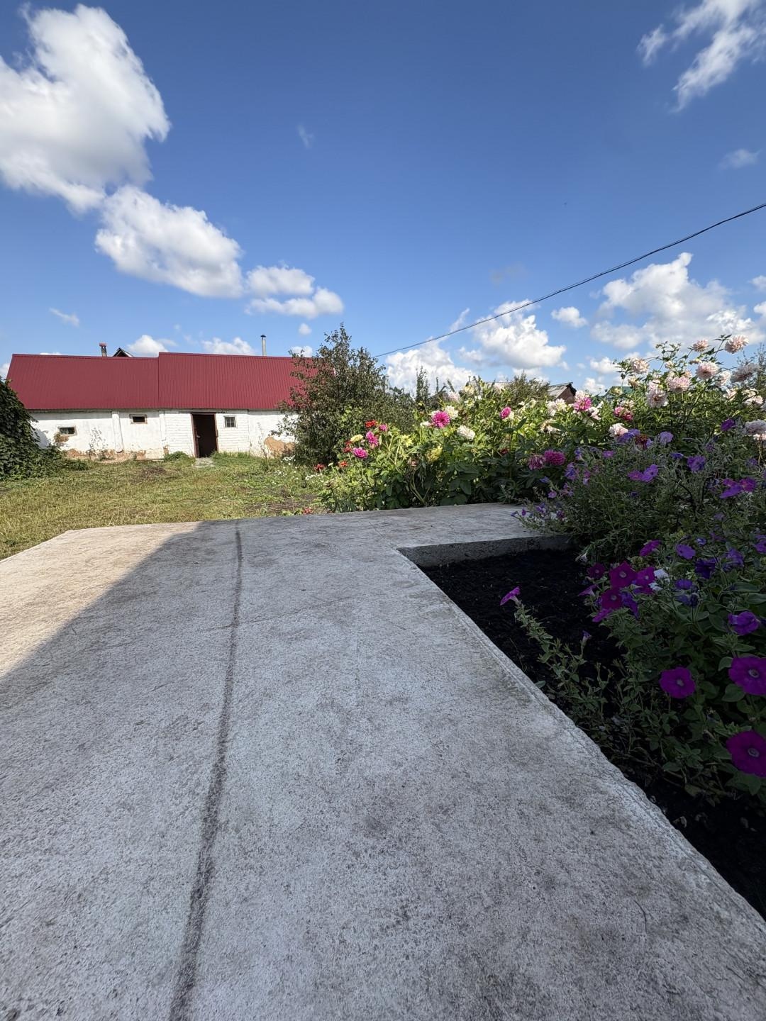 Во дворе тротуарная плитка,что обеспечит чистоту и уют во дворе.